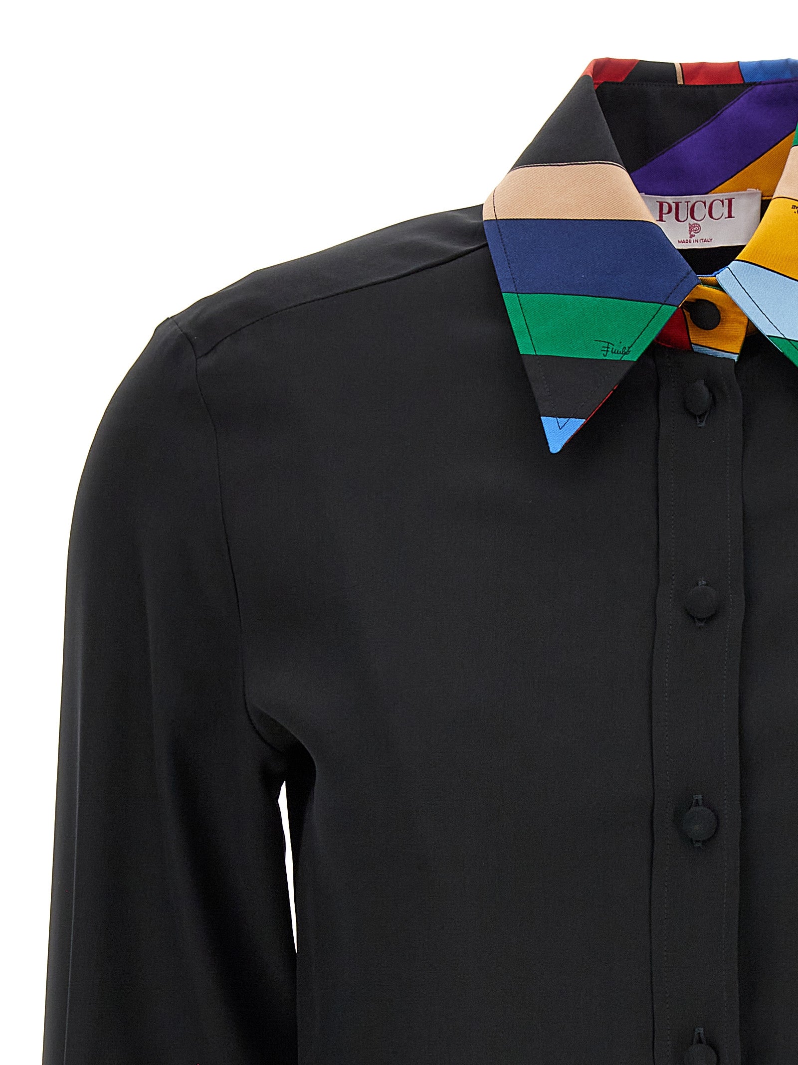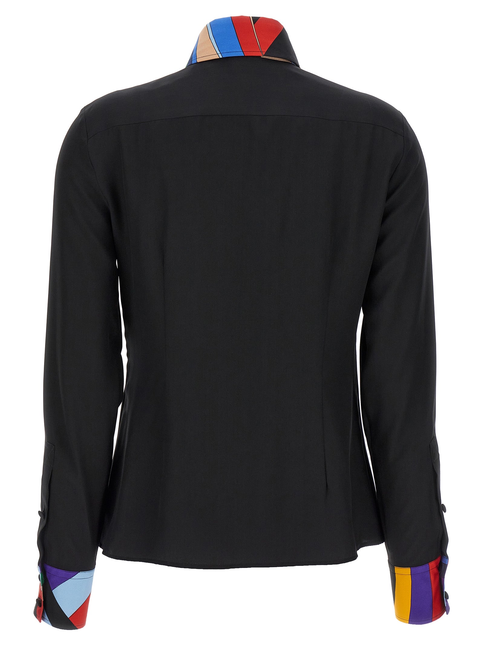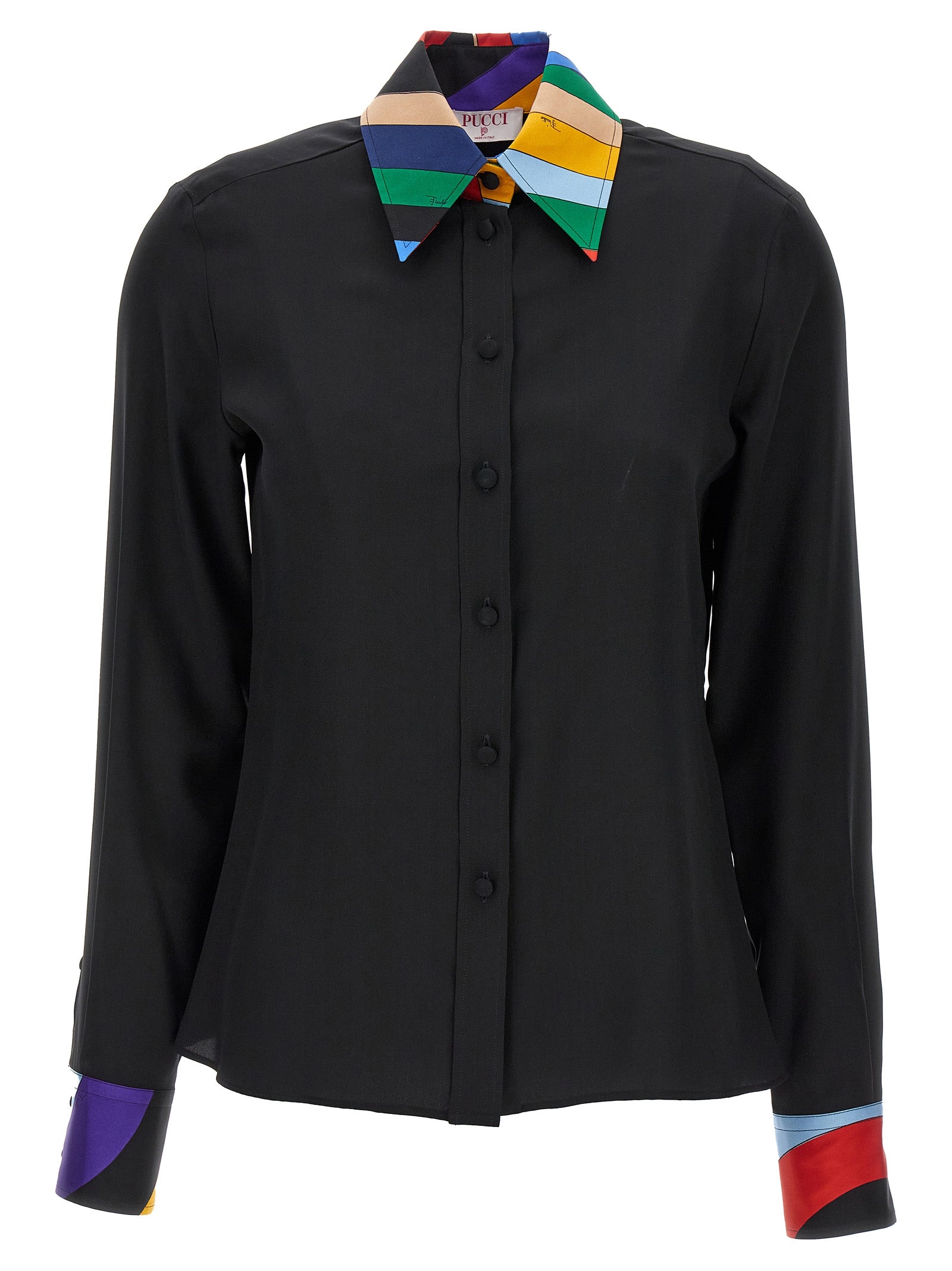 Silk shirt with contrast 'Iride' print inserts, button closure, long cuffed sleeves. This product, as well as many other Pucci items, is made with an all-over print that falls differently on each garment, the product shipped may differ from the one in the picture.