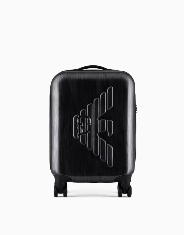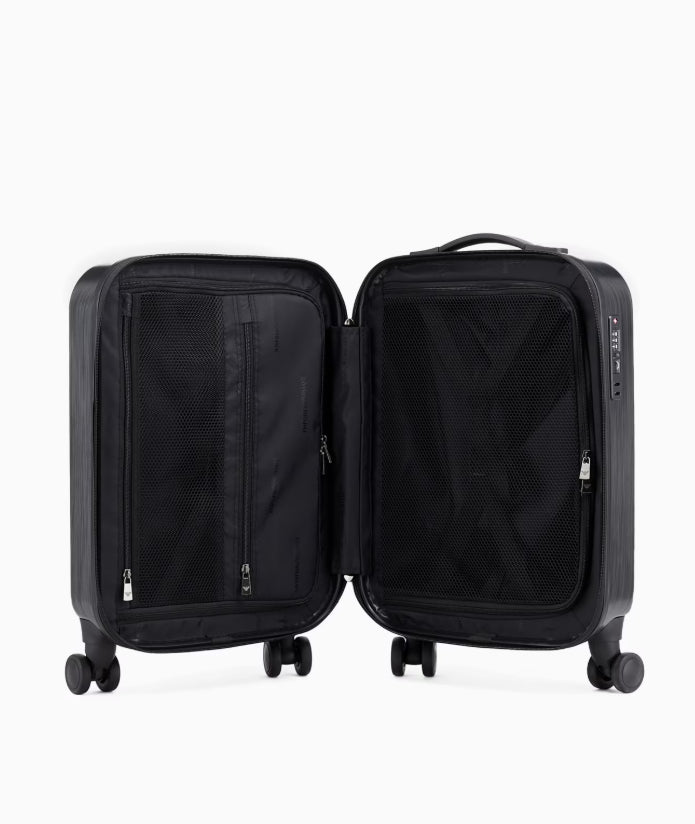 This cabin-sized trolley is made of ABS, a lightweight but impact-resistant material, and features a TSA lock. It is equipped with 4 wheels, telescopic handle and internal compartments with object-holding nets. Maxi 3D eagle logo.