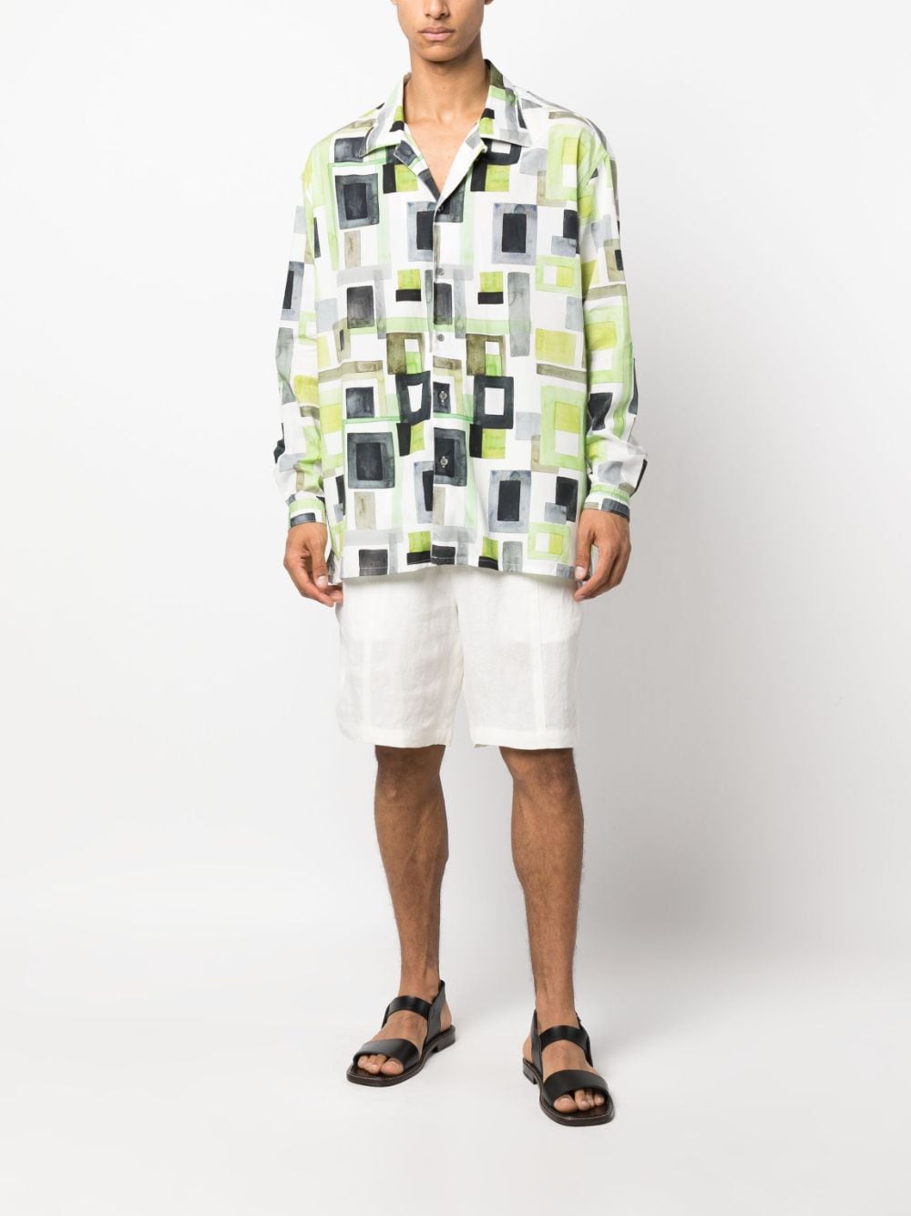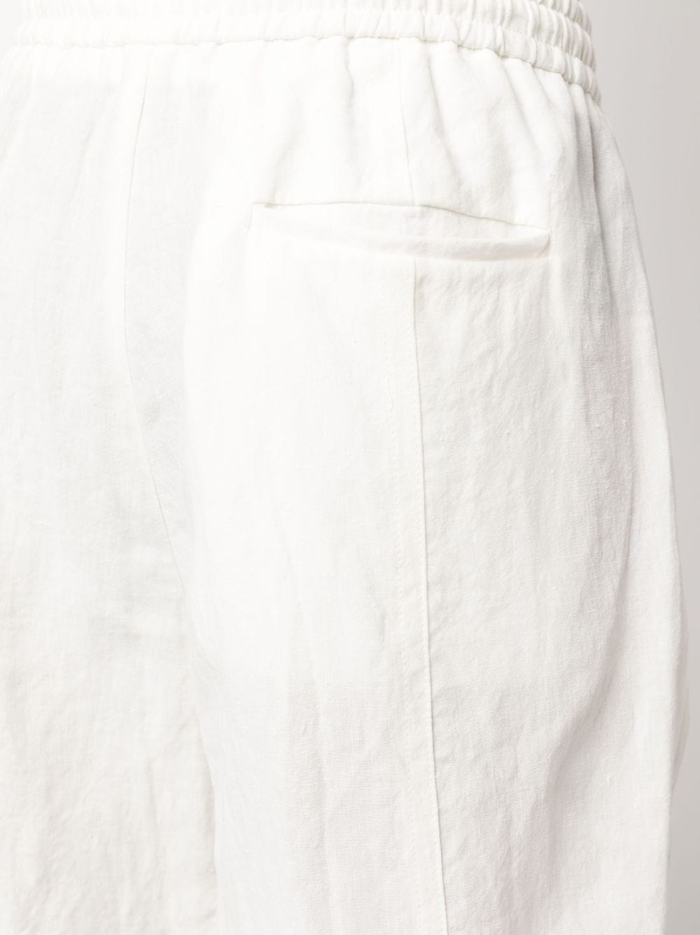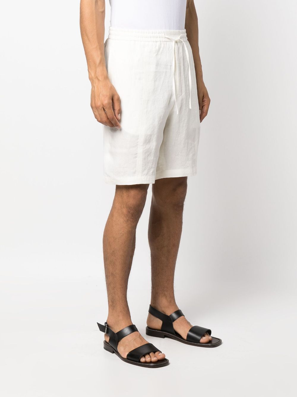 drawstring flax bermuda shorts from EMPORIO ARMANI featuring chalk white, linen/flax, mid-rise, elasticated drawstring waistband, straight leg, rear welt pocket and knee-length. This item contains at least 50% materials which are certified or widely recognised as having a lower environmental impact through production and/or manufacturing processes that reduce water consumption and the use of harmful chemicals, or re-use by-products of the production process.. Learn more about what makes a product Conscious on our Conscious Criteria page.