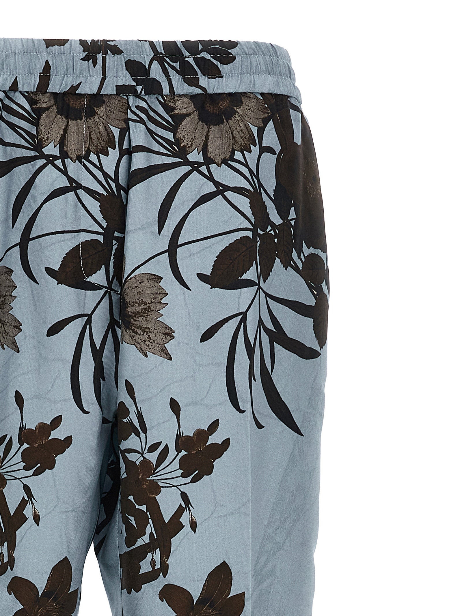 'Doride I' silk pants with '19th Century Ramage' print, elastic waistband and drawstring, pockets, straight leg with stretched crease.