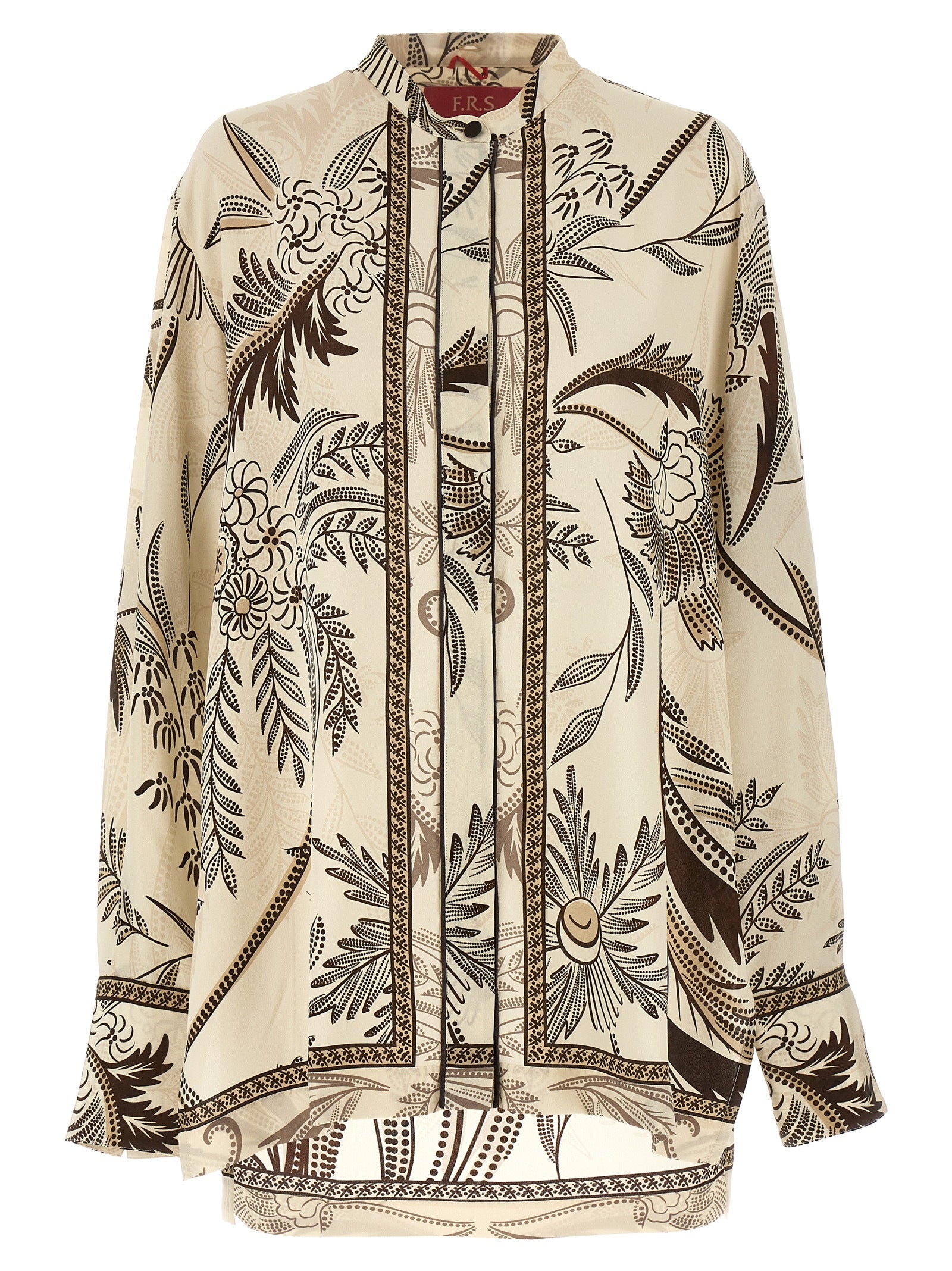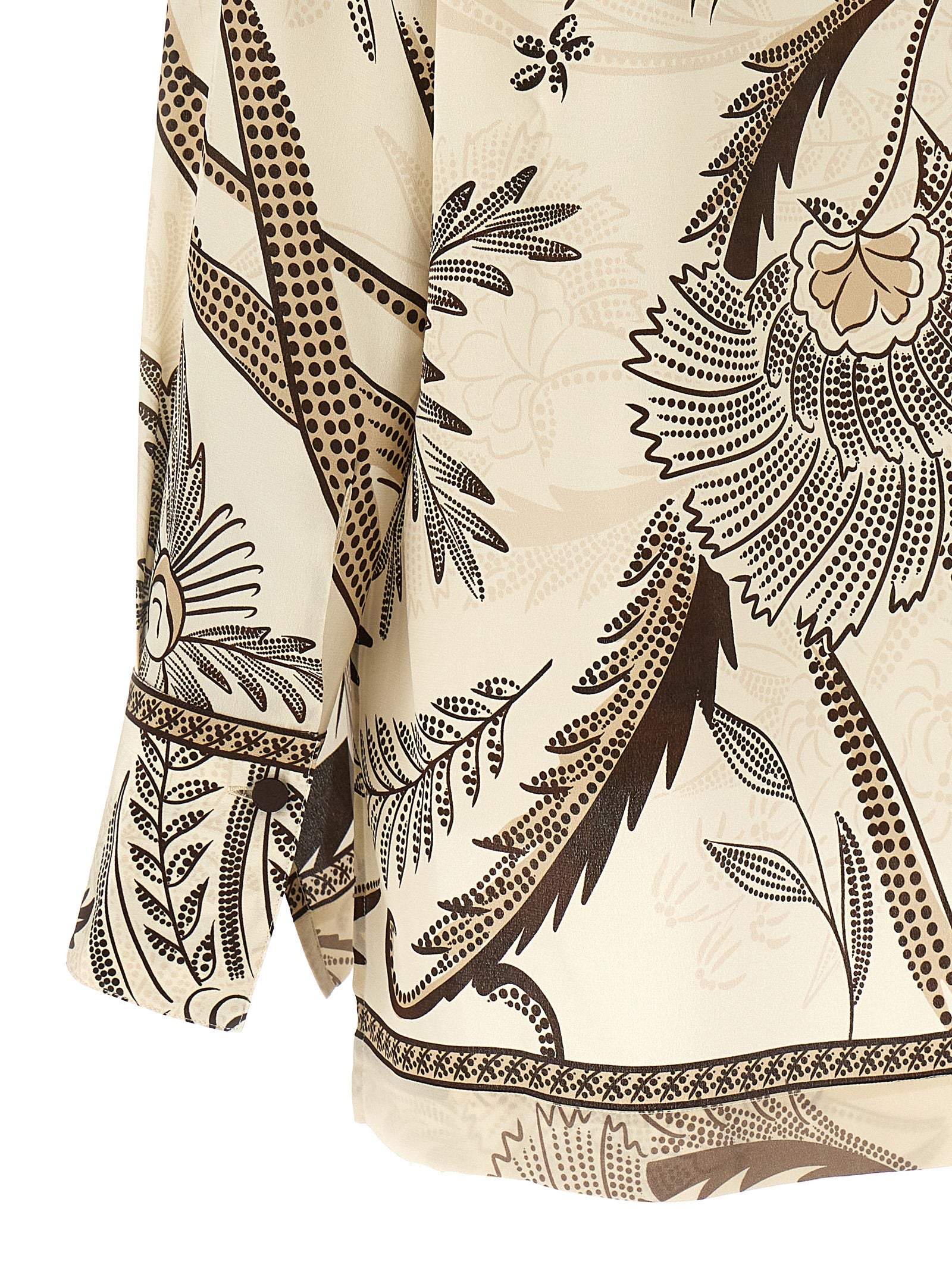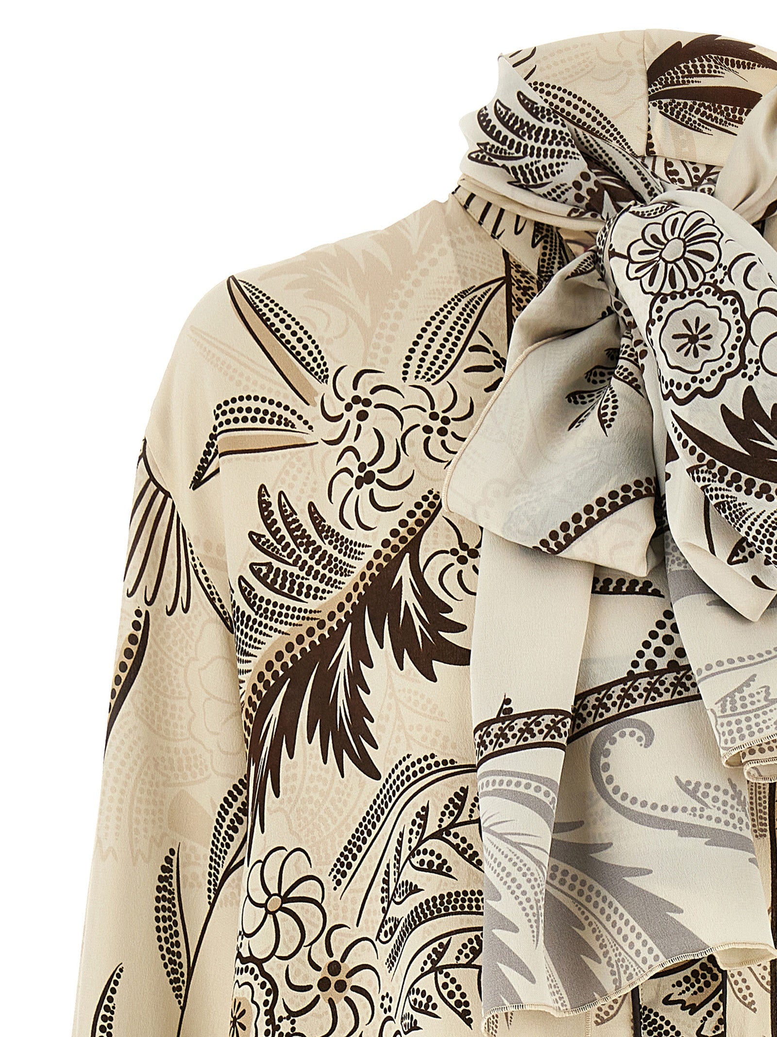 'Egle' printed silk shirt with sash tie at the removable neck, long cuffed sleeves, button closure.