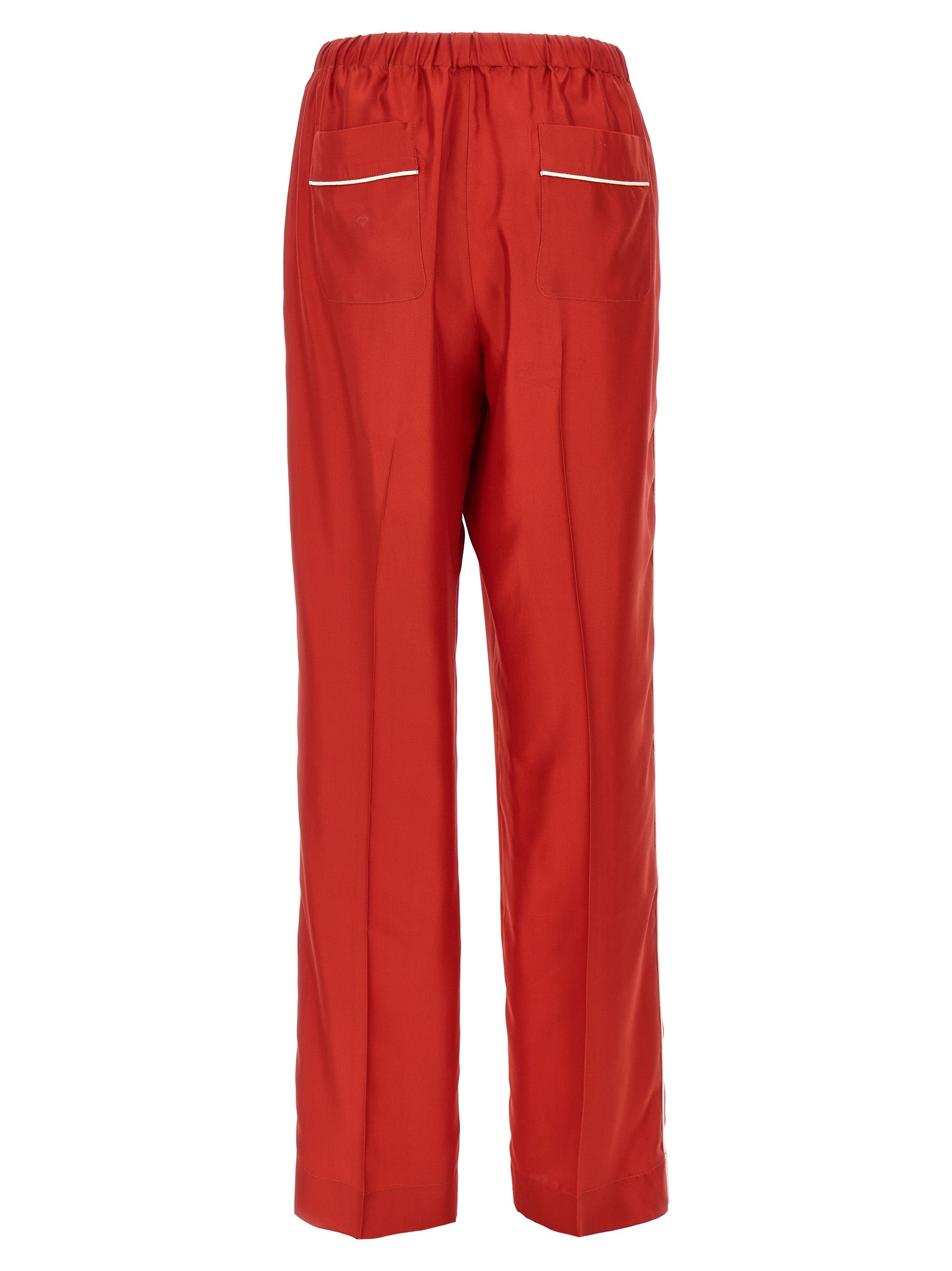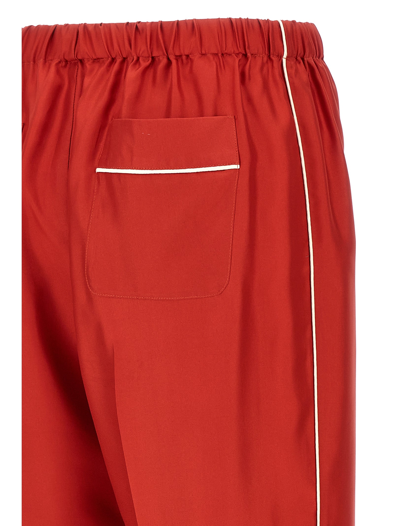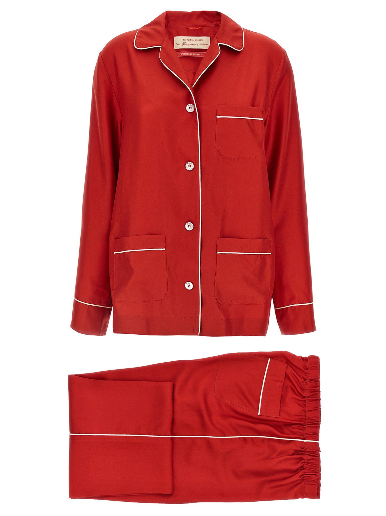 Set in silk satin with contrasting piping consisting of long-sleeved shirt with cuffs, button closure, pockets and trousers with elastic waistband, button closure, pockets.