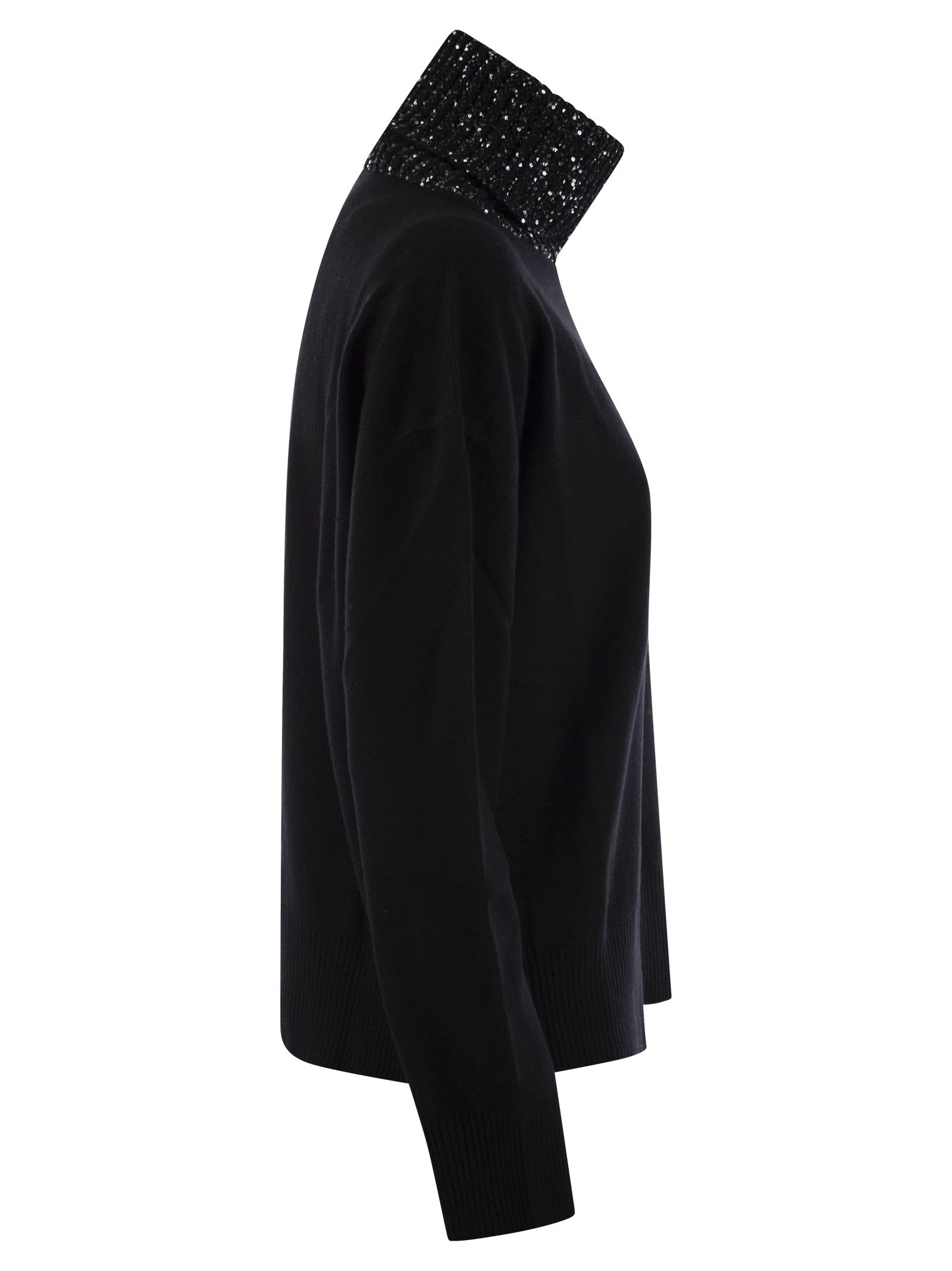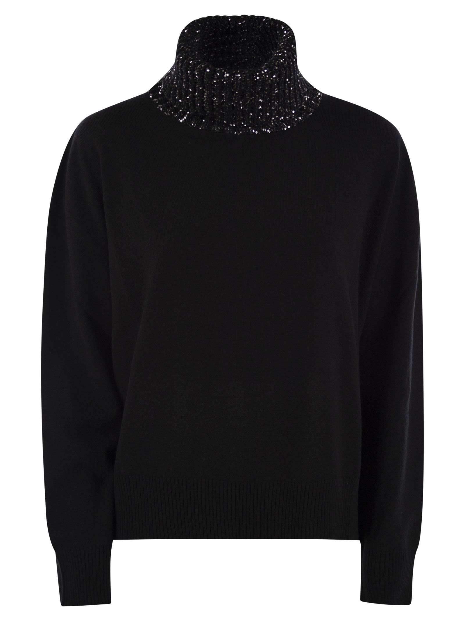 This refined turtleneck sweater is made of wool, silk and cashmere yarn. An accessory that can brighten up any look thanks to the shiny micro-sequins on the collar. - High neck - Micro sequins - Soft fit DESIGNER ID: MAD214F028I918 825