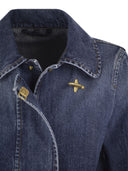 Revisiting the iconic 4 Hooks in a feminine version, this unlined mini 3 Hooks is enriched with split details. Made from stone washed denim, it features two large pockets and a closure with iconic hooks and customised snaps. - Regular fit - 3 Hooks - Patch pockets on the front DESIGNER ID: NAW1248425LWBDU007