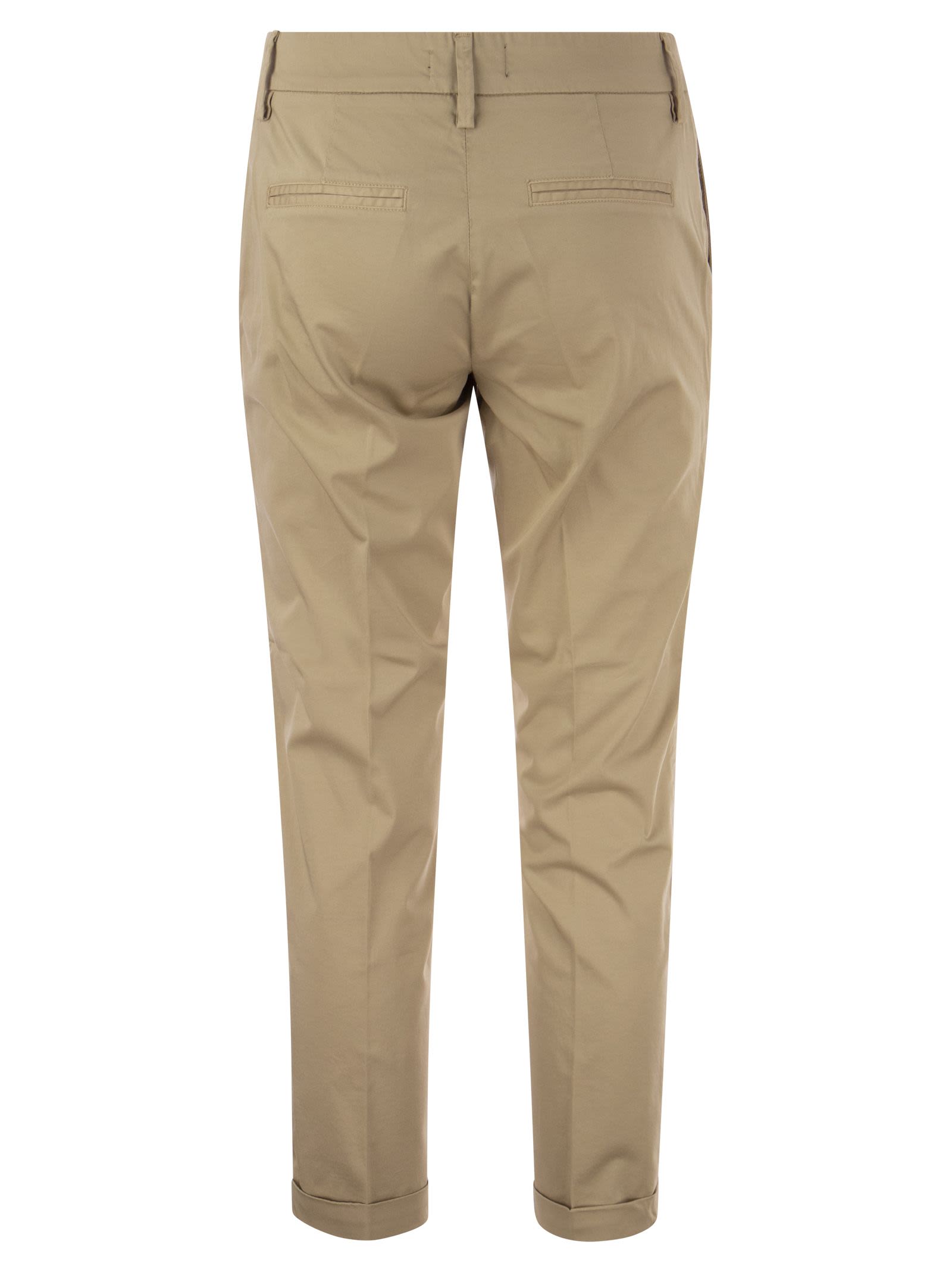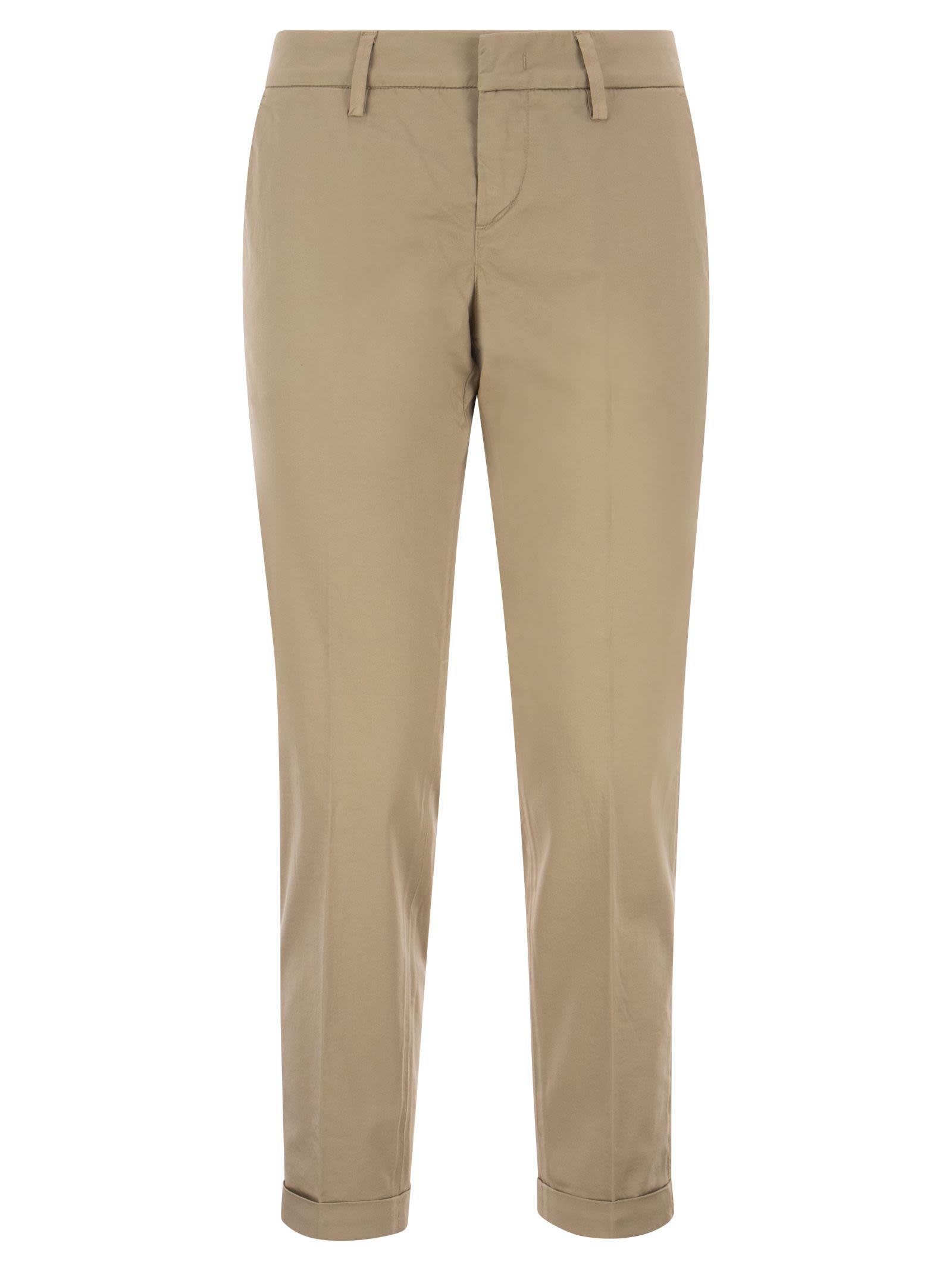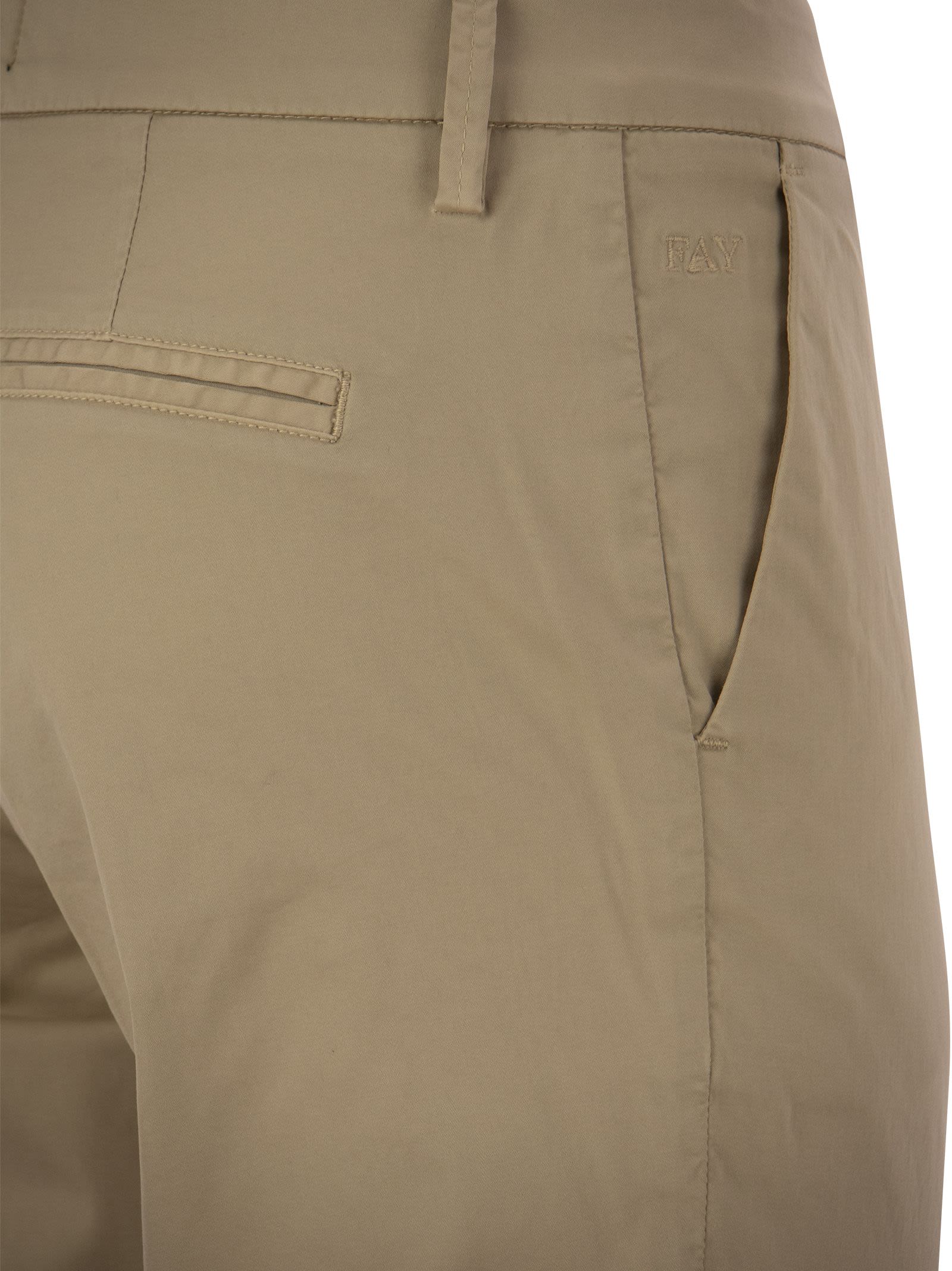 Capri trousers in garment-dyed stretch satin with ironed crease and turned-up bottom. Equipped with diagonal front pockets and flared back pockets, it is enriched by Fay embroidery on the side. - Regular fit - Turn-ups - Ankle length DESIGNER ID: NTW8046530TGUPC008