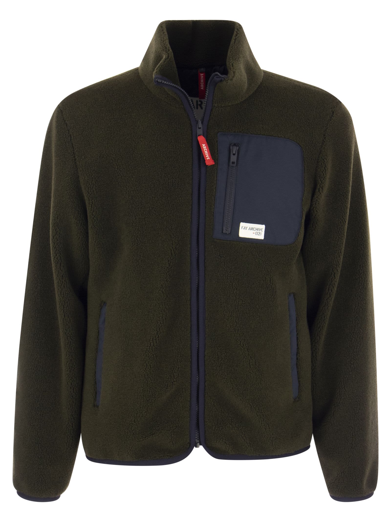 Warm shearling-effect fleece jacket, finished with ribbon edging. Equipped with two zipped side pockets, it has a patch pocket on the chest with the Fay Archive label. The zip closure is embellished with the Archive pull. - Fitting: regular DESIGNER ID: MAM12471500VPNV808