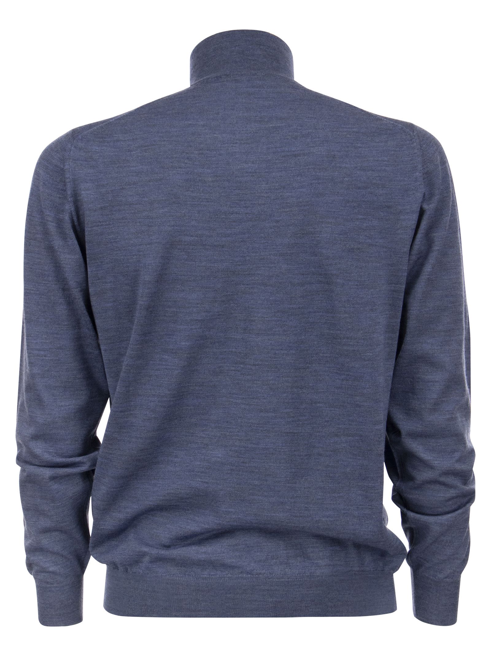 Form meets function in the quarter-zip jumper. Crafted with care and attention to detail by artisans in Italy from sumptuously soft and lightweight single-ply merino wool. The jumper is designed with an elegant quarter-zip front and a high collar that provides protection from the elements. Its light weight makes it a garment to wear when the warm weather starts to subside in autumn, and also means it's perfect for layering in mid-winter. Wear alone or under a waistcoat or jacket. - Regular fit - Quarter zip front DESIGNER ID: 4UI07725 22