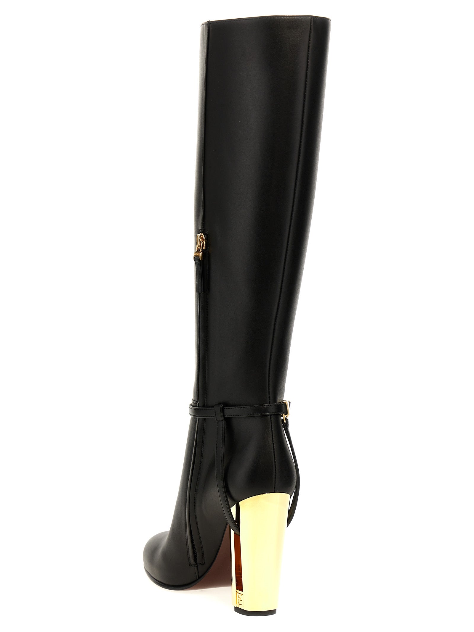 'Delfina' leather boots with side zip closure, cut-out detail heel and gold metal FF logo.