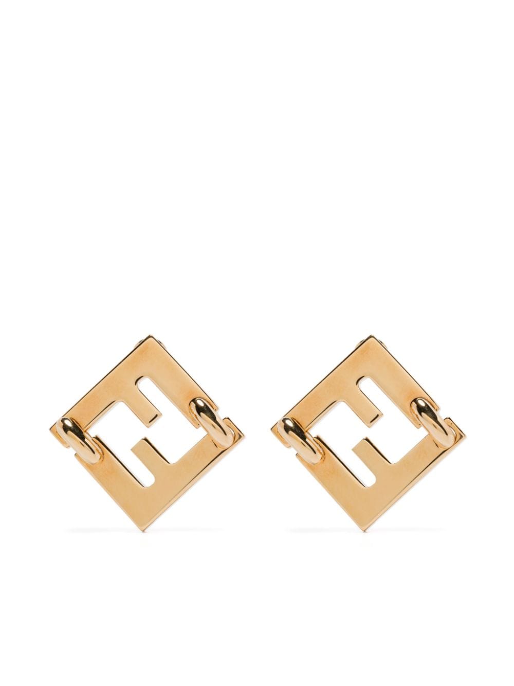 gold-tone polished finish FF motif drop design post-back fastening for pierced ears These earrings come as a pair.
