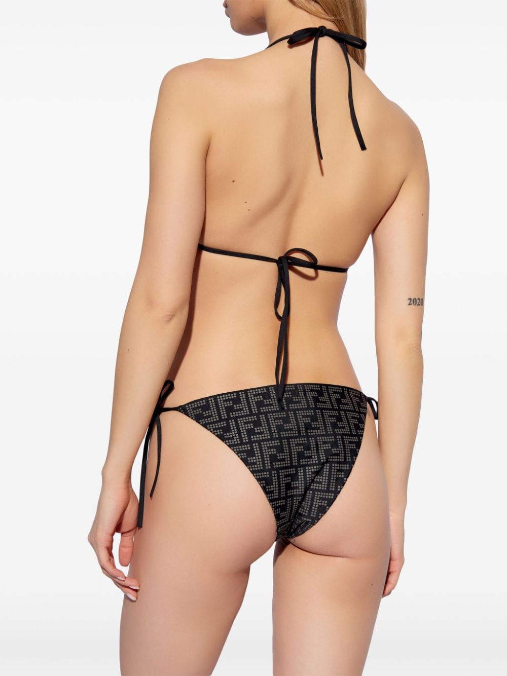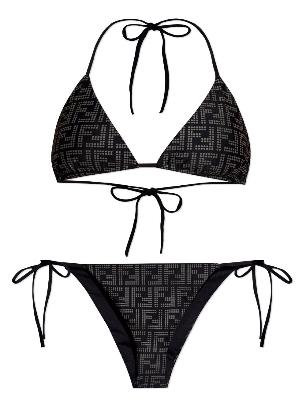 black/off-white stretch-jersey all-over logo print Top triangle cup halterneck tie fastening Briefs low-rise side-tie bottoms Be mindful to try on swimwear over your own garments.