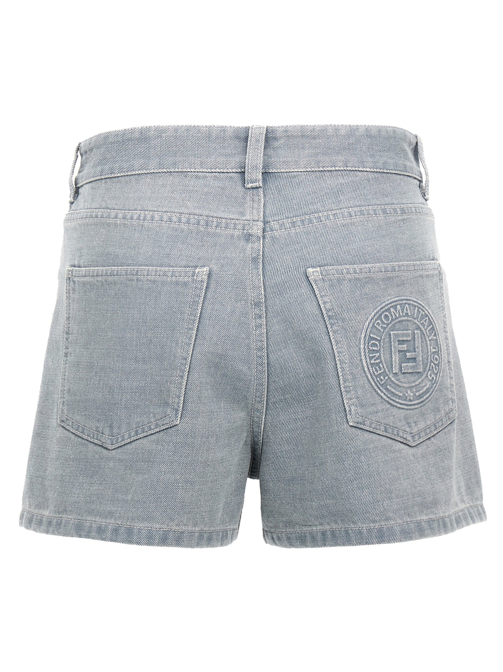 Back embossed 'Go-To'in denim di cotone, stampa 'Fendi Stamp 1925' shorts, zip and front button closure, five pockets.