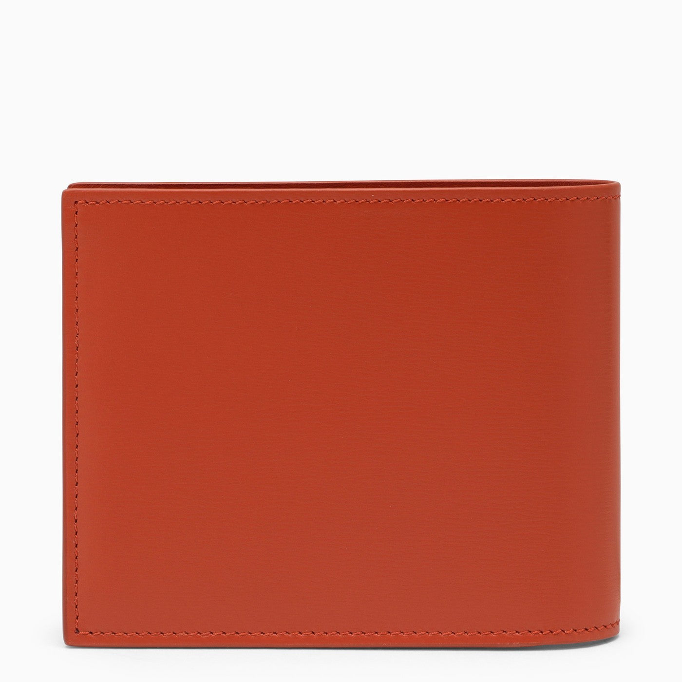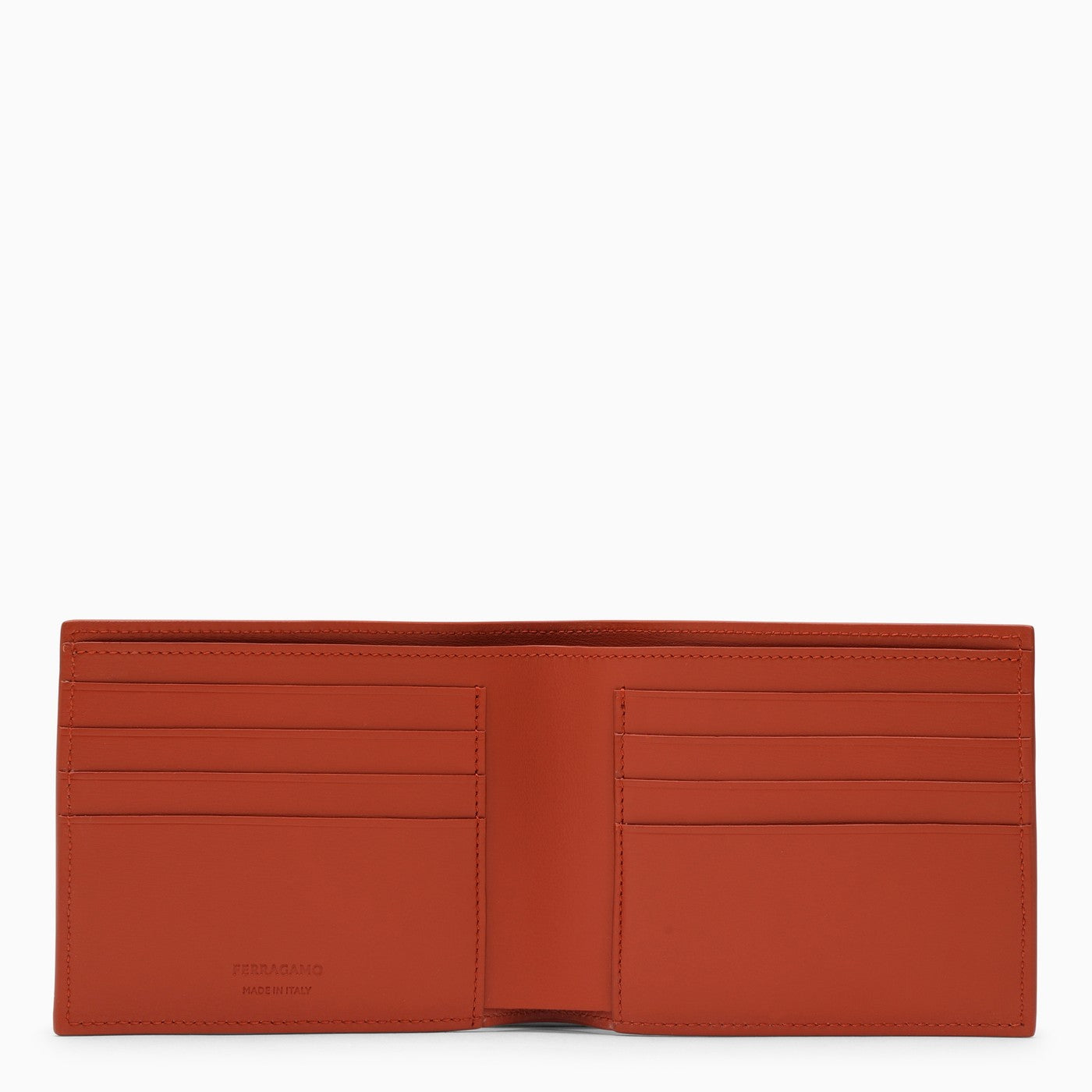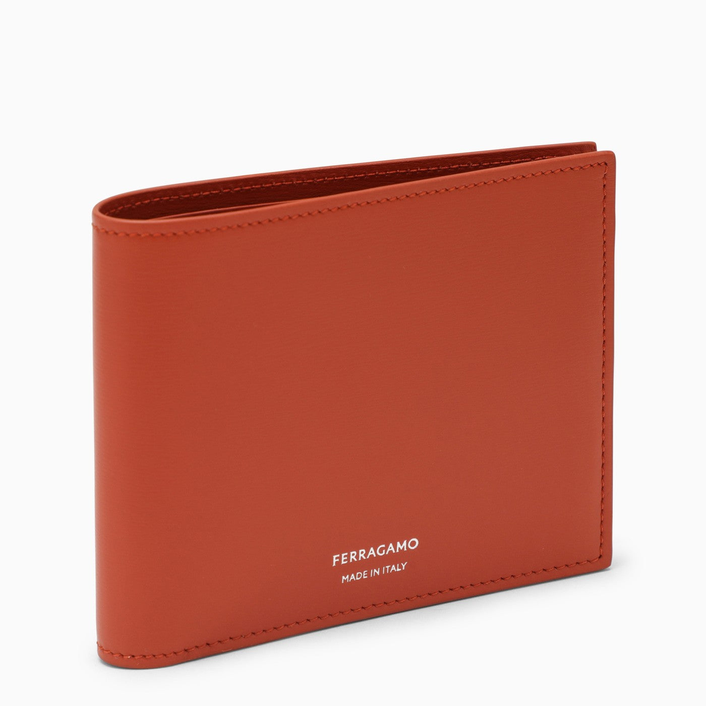 Wallet in terracotta-coloured leather by Ferragamo, featuring a contrasting front lettering logo, eight internal card slots and a banknote pocket.