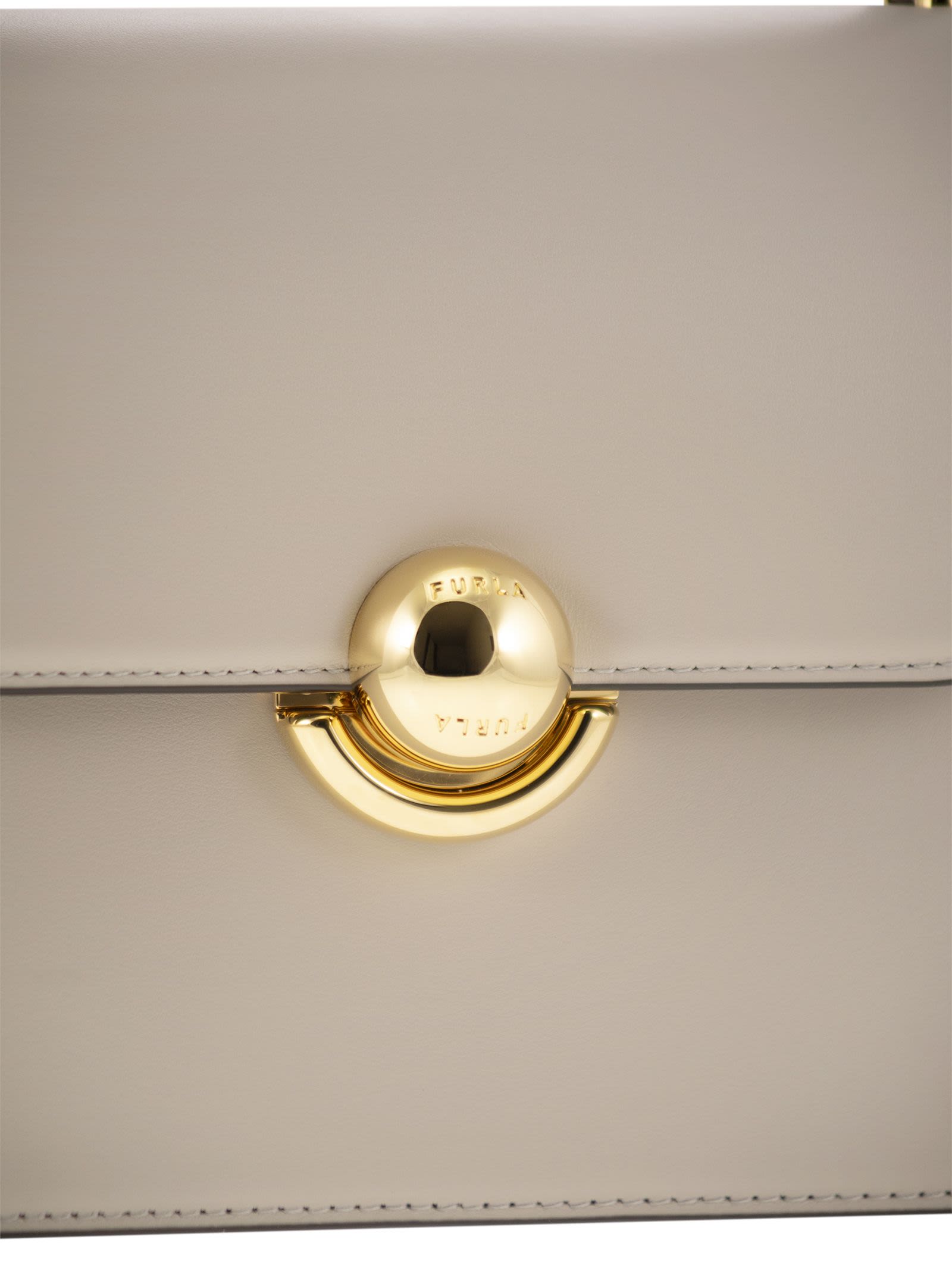 Refined and distinctive: be inspired by the new Furla Sfera crossbody in mini size, the model features a saddle design characterised by soft, sinuous lines. Micro details lining the inside flap complement the rounded Sfera closure. The accessory with matching adjustable shoulder strap can be worn comfortably on the shoulder. - Inside open pocket on front panel - Inside pocket with zip closure DESIGNER ID: WB01475 BX0428 VAN00