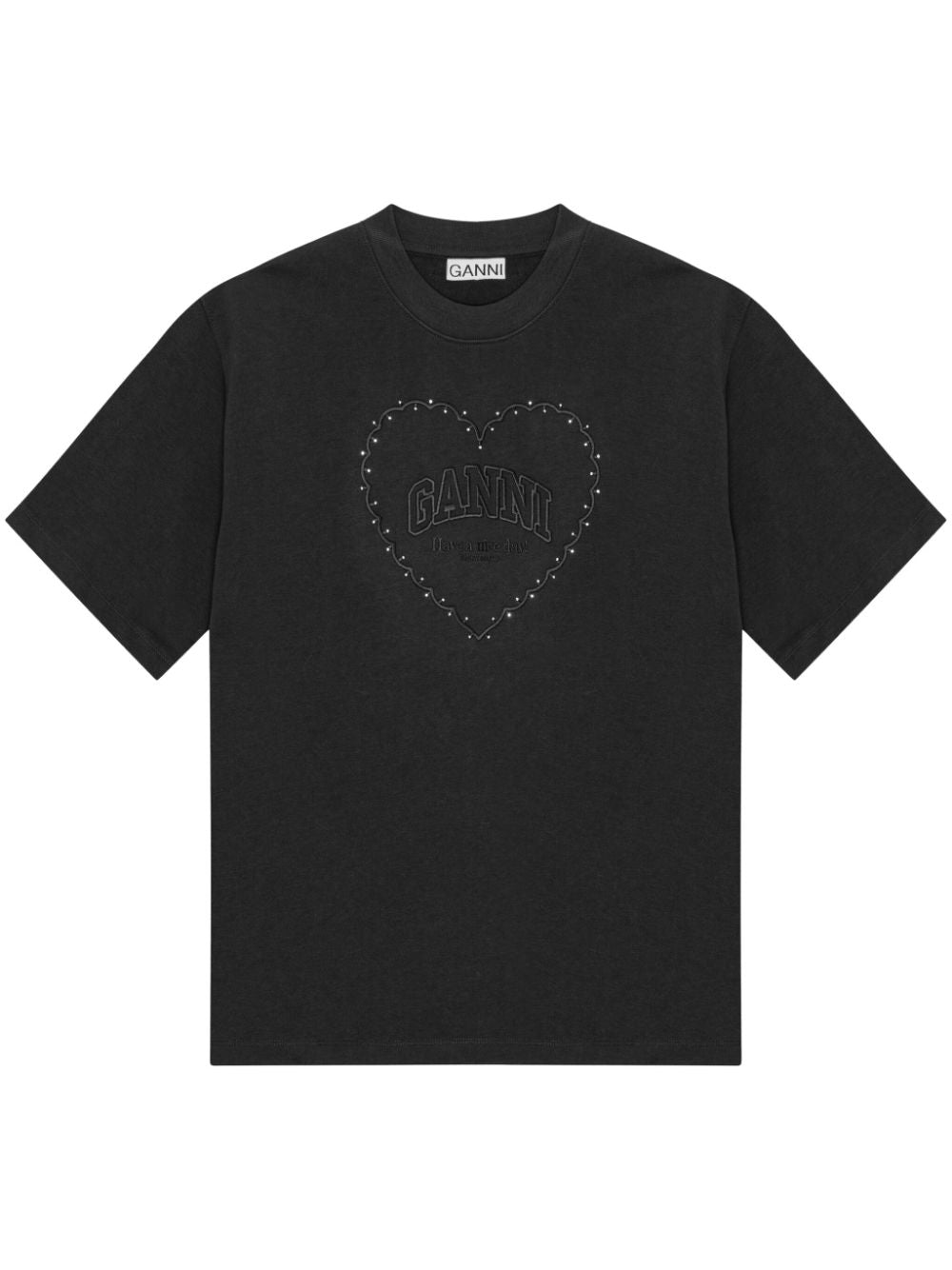 Ganni Heart Embroidered Cotton T Shirt