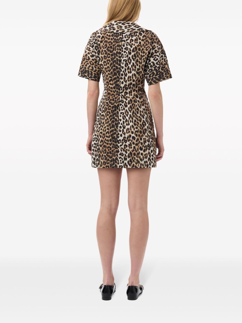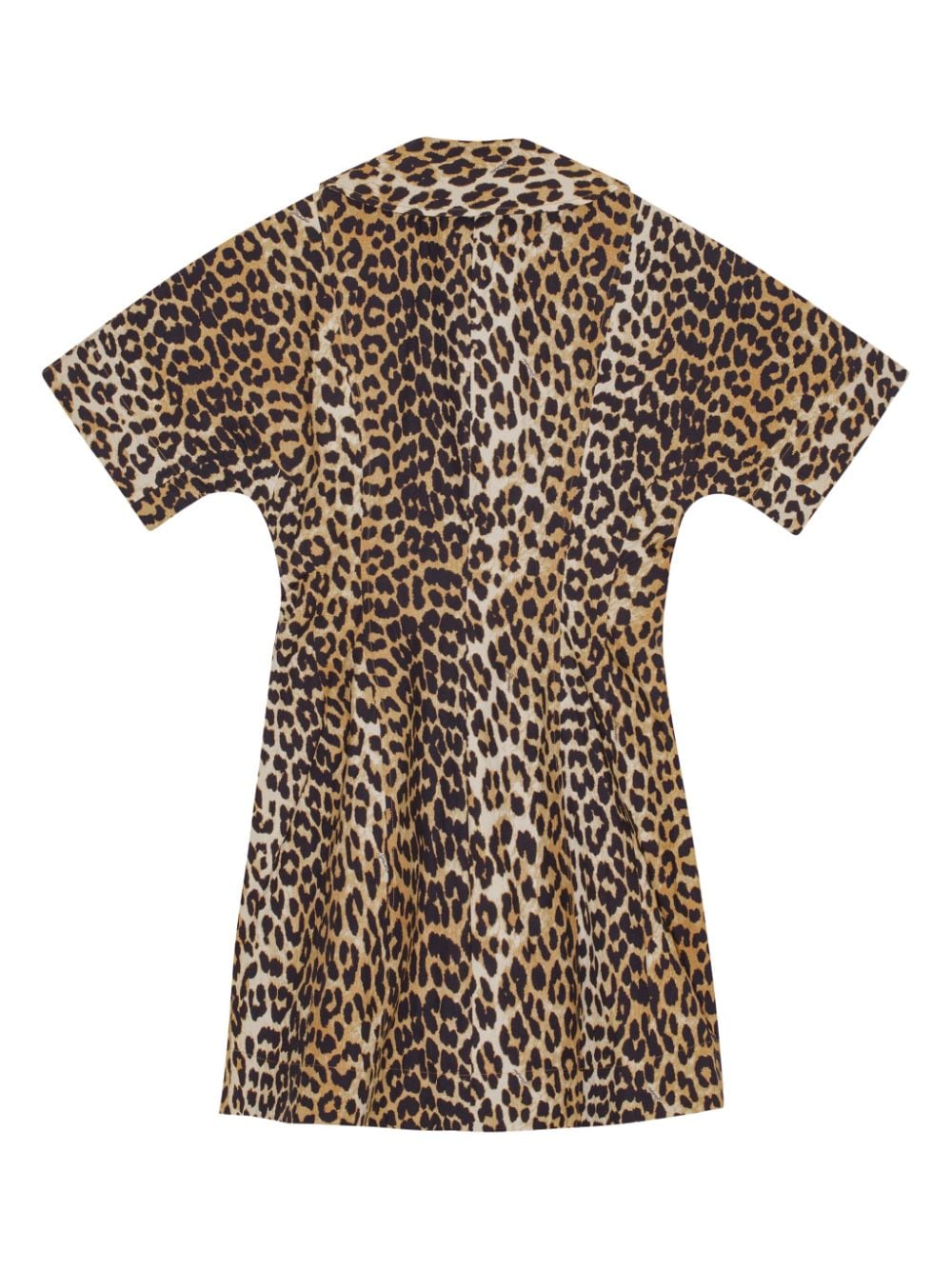 brown/multicolour organic cotton poplin texture all-over leopard print wrap design straight-point collar plunging V-neck short sleeves fitted waistline straight hem thigh-length This item is made from at least 50% organic materials. Learn more about what makes a product Conscious on our Conscious Criteria page