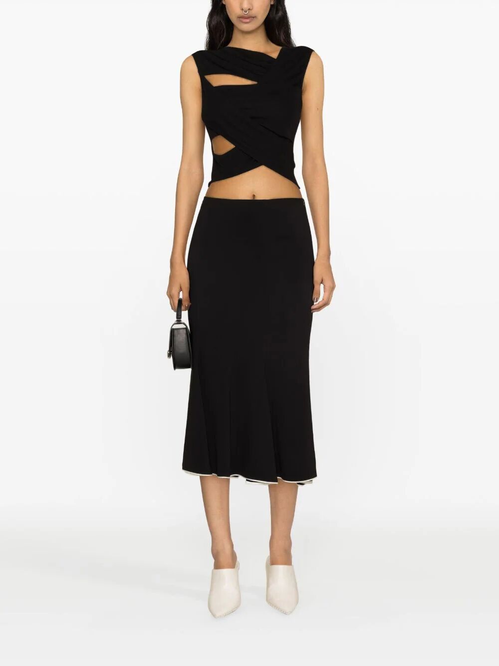 black jersey texture cut-out detailing slim cut asymmetric neck sleeveless asymmetric hem cropped