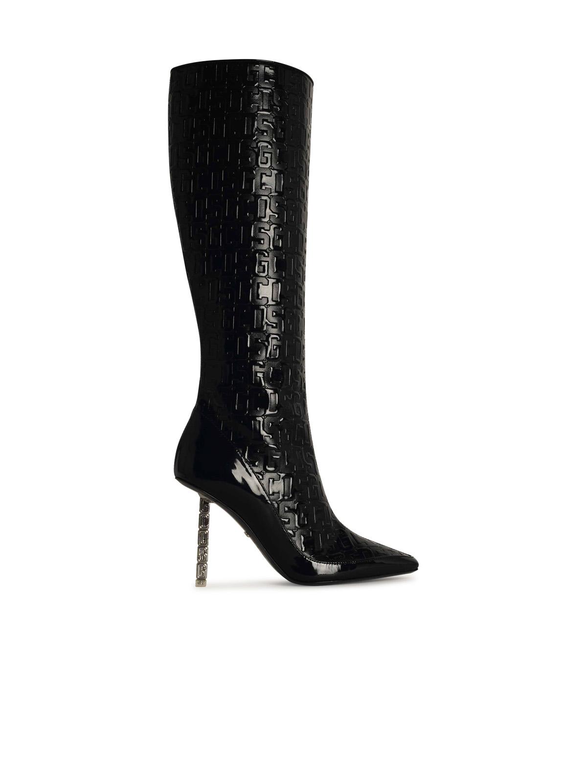 Long neck with zip closure, tapered toe, tone-on-tone serial monogram pattern, finished heel, tone-on-tone profiling\nHeel height 9 cm