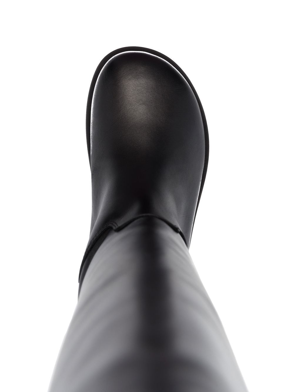 knee-length platform 70mm boots from GIABORGHINI featuring black, calf leather, knee-length, panelled design, tonal stitching, round toe, platform sole and chunky rubber sole.