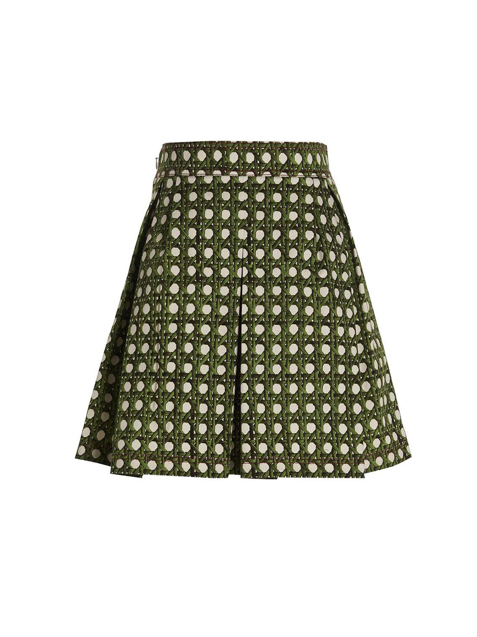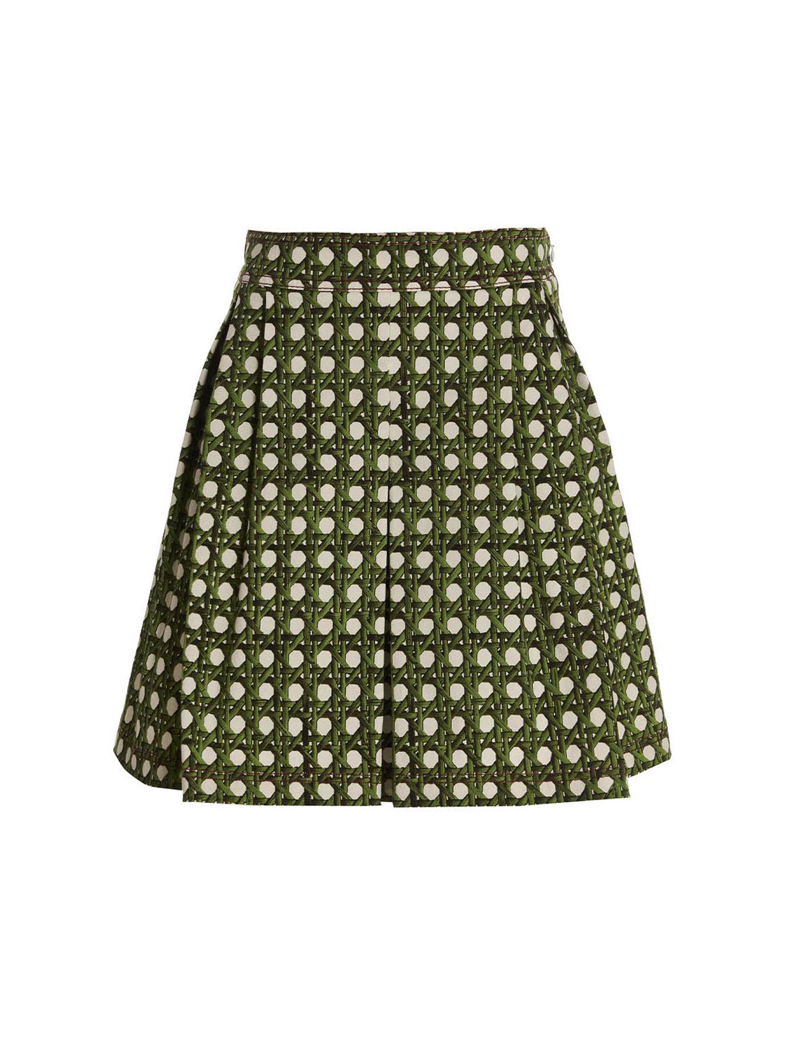 Short cotton skirt with 'Treillage' print, a side zip closure.osure.