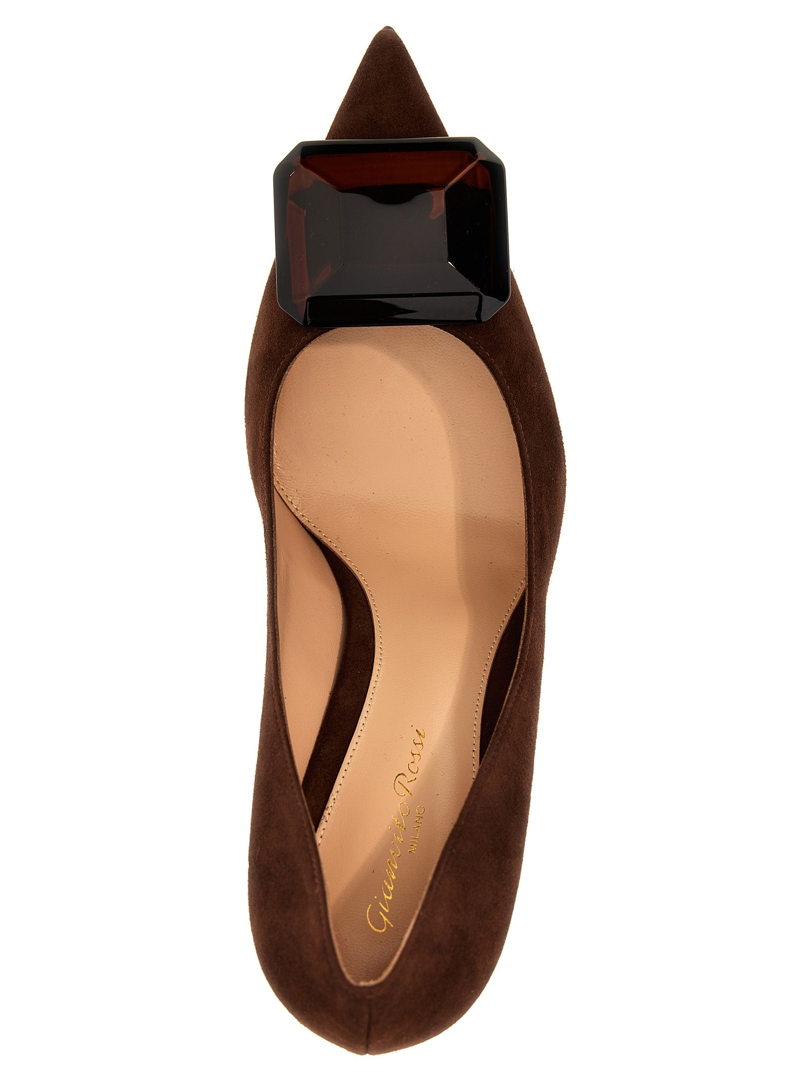 'Jaipur' suede pumps with maxi charm on the front.