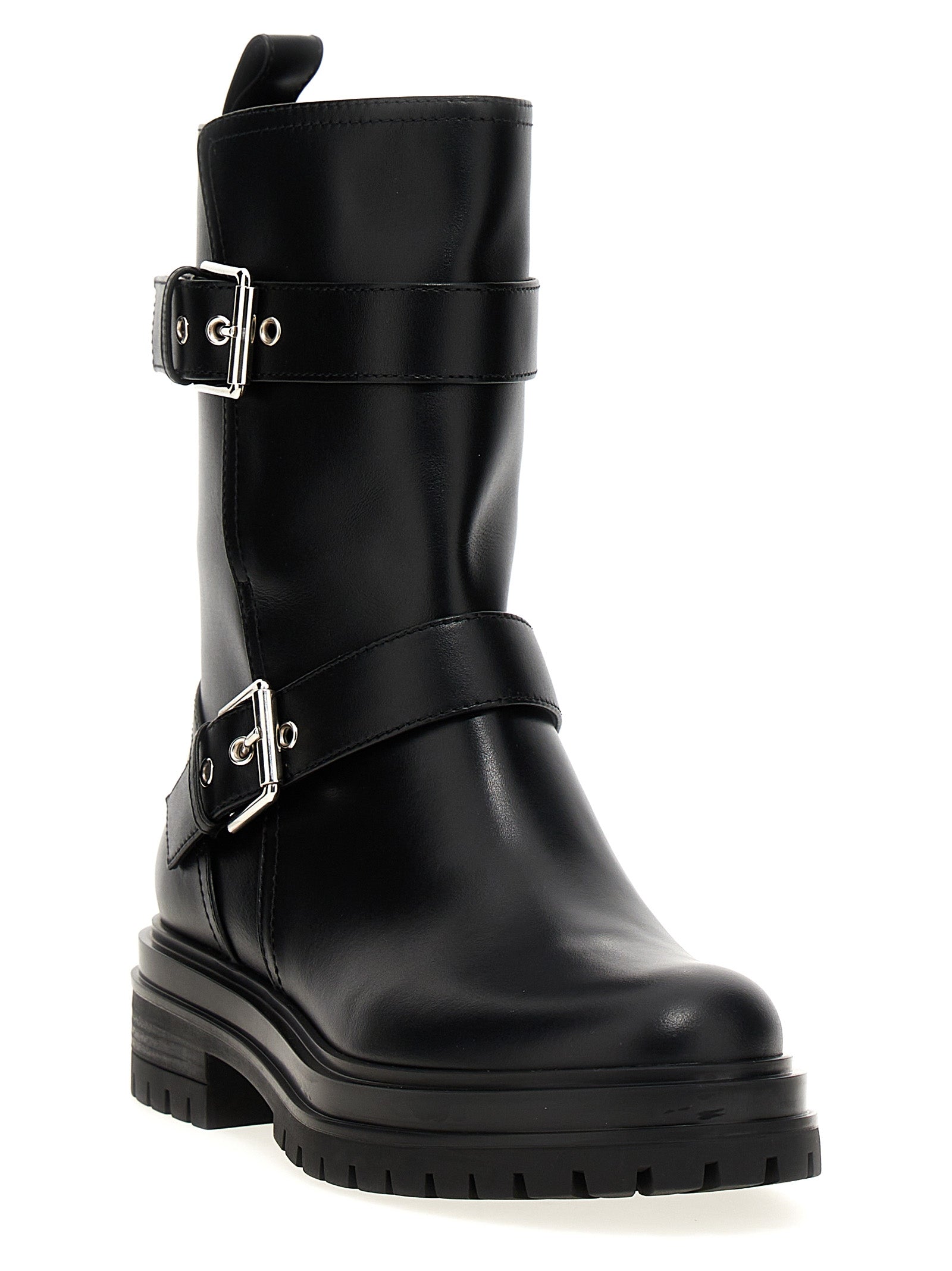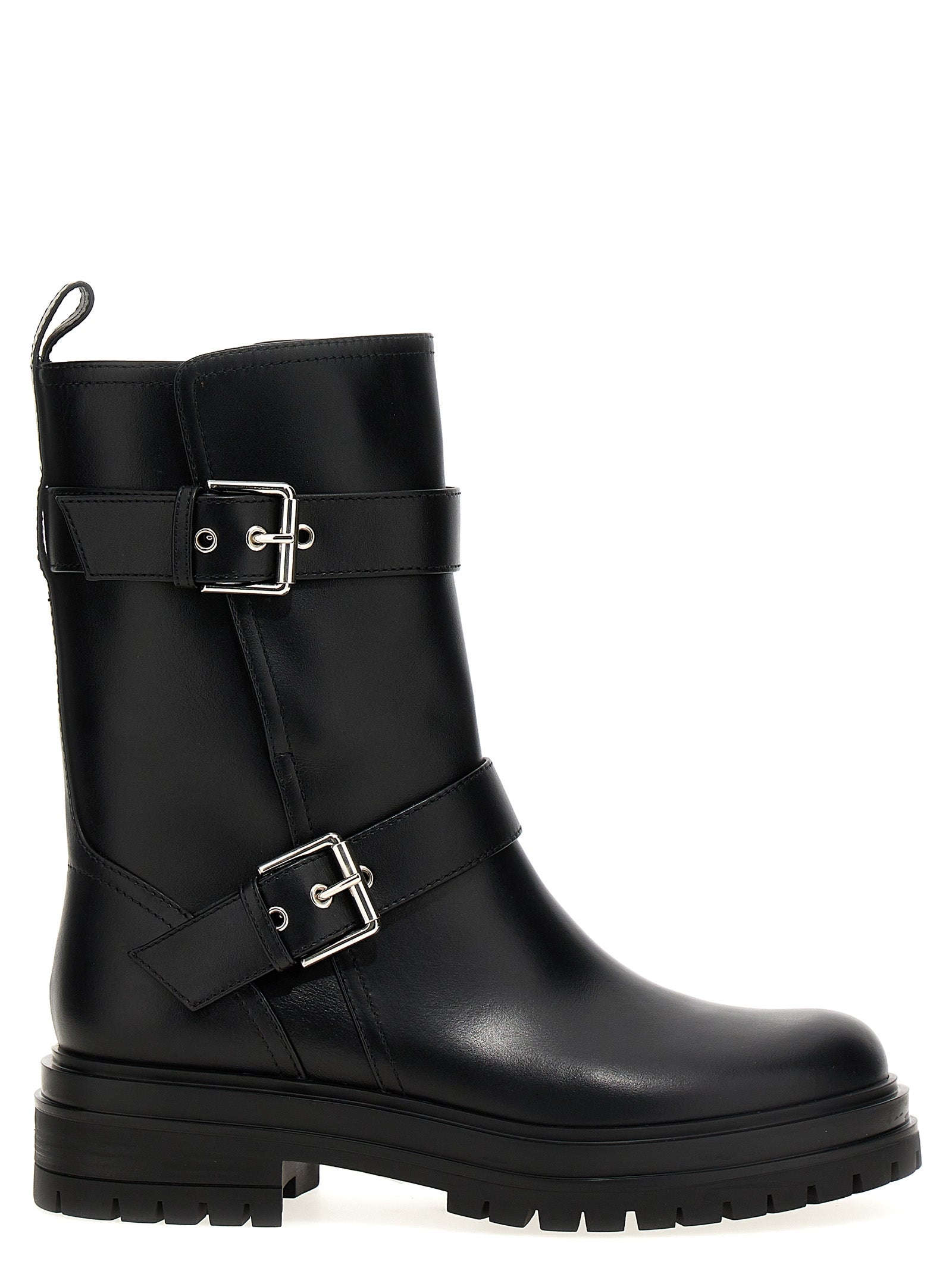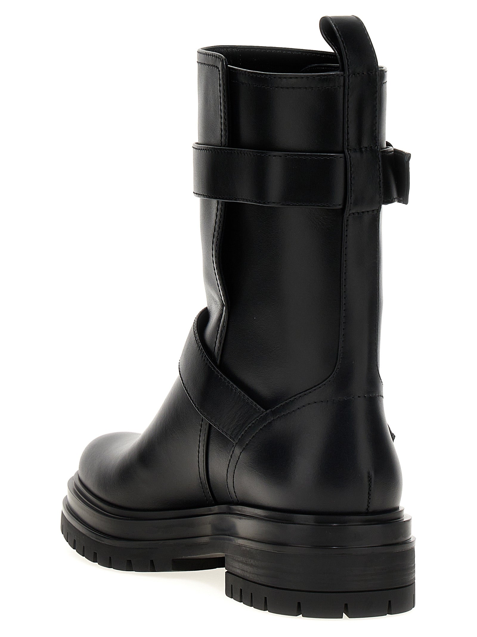 'Thiago' leather ankle boots, adjustable straps and buckle, rubber sole.