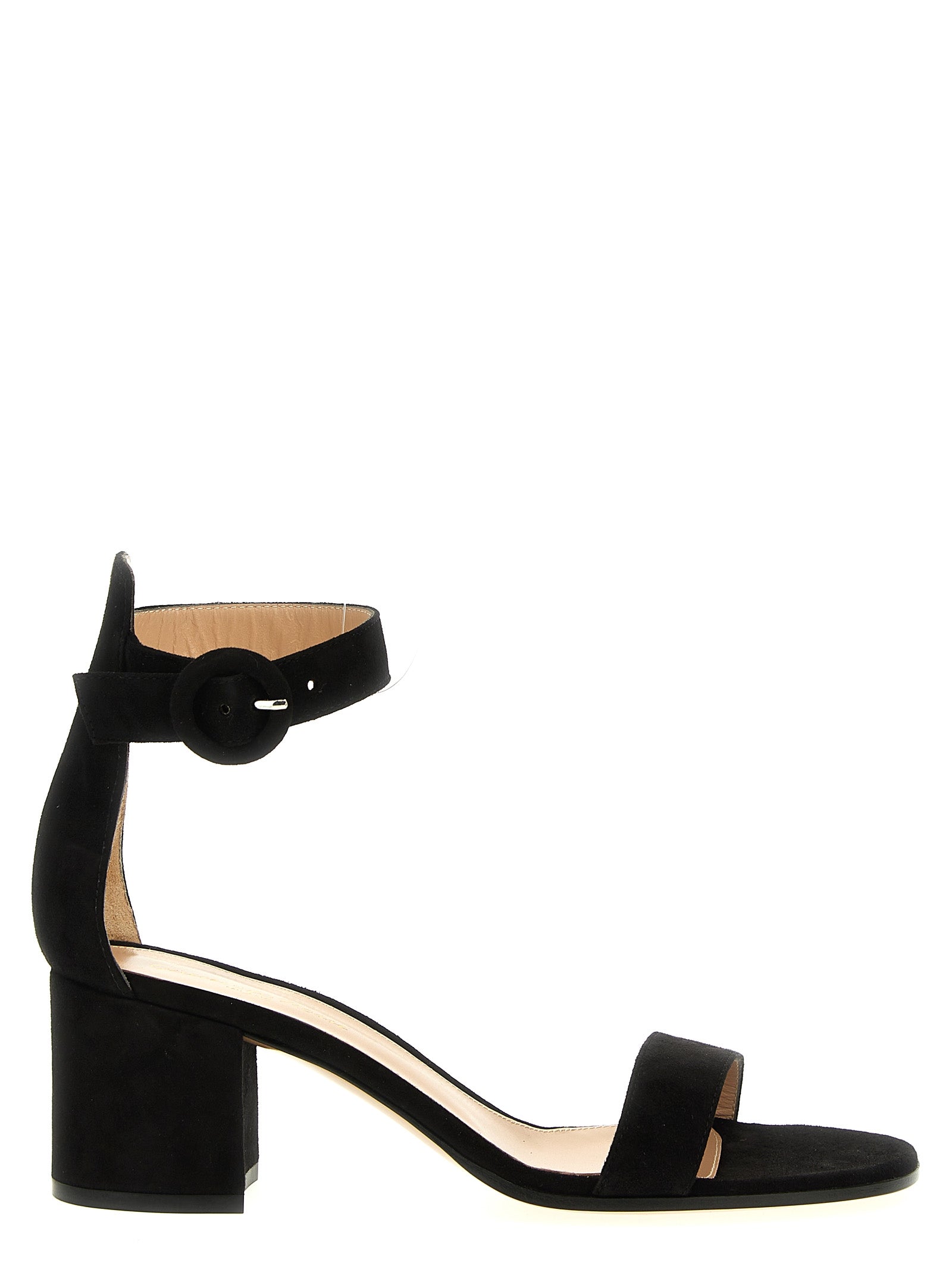 'Versilia' suede sandals with ankle strap, wide heel.