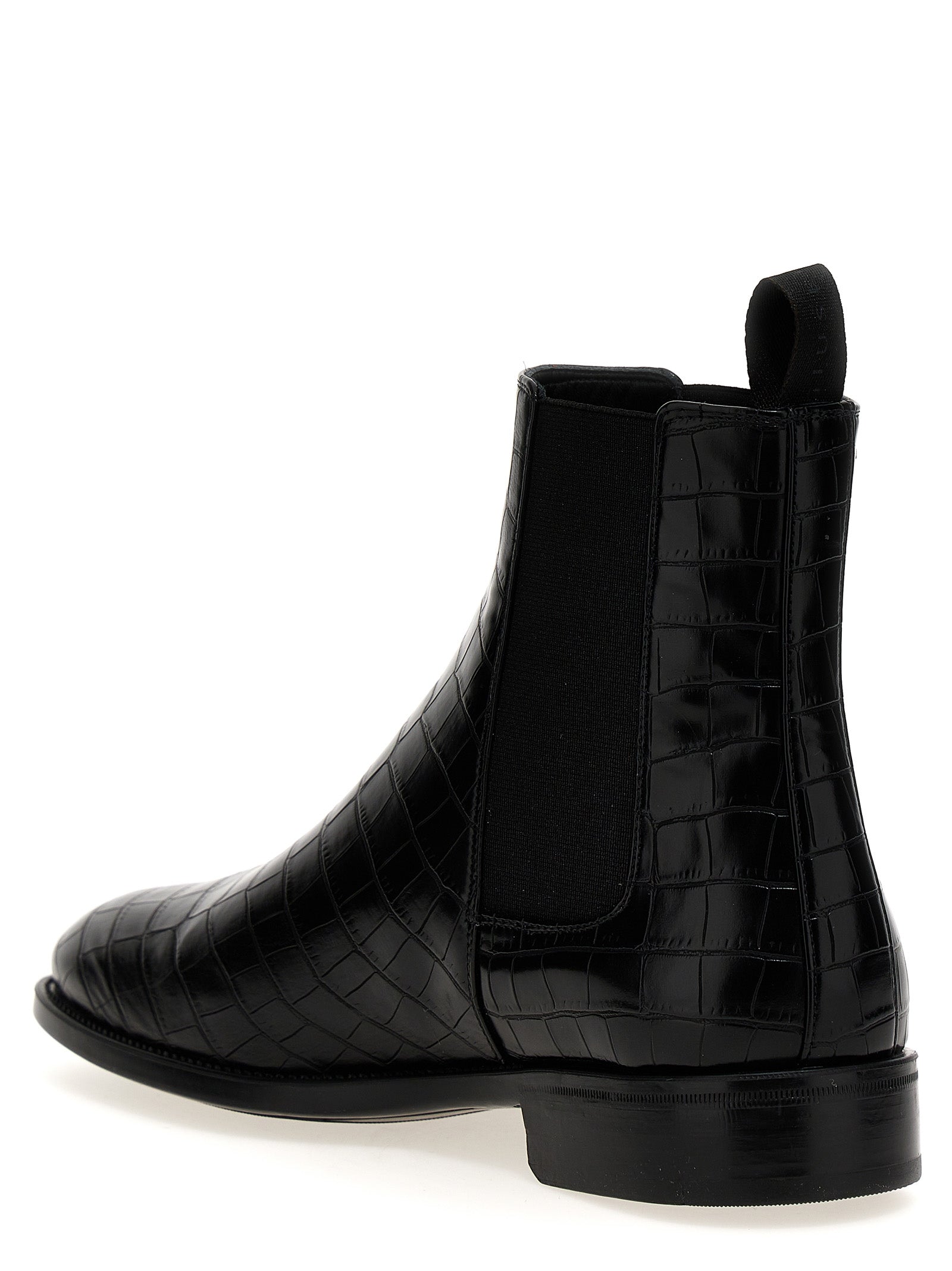 'Sorrento' croc print leather ankle boots with elastic ankle straps, rubber sole.
