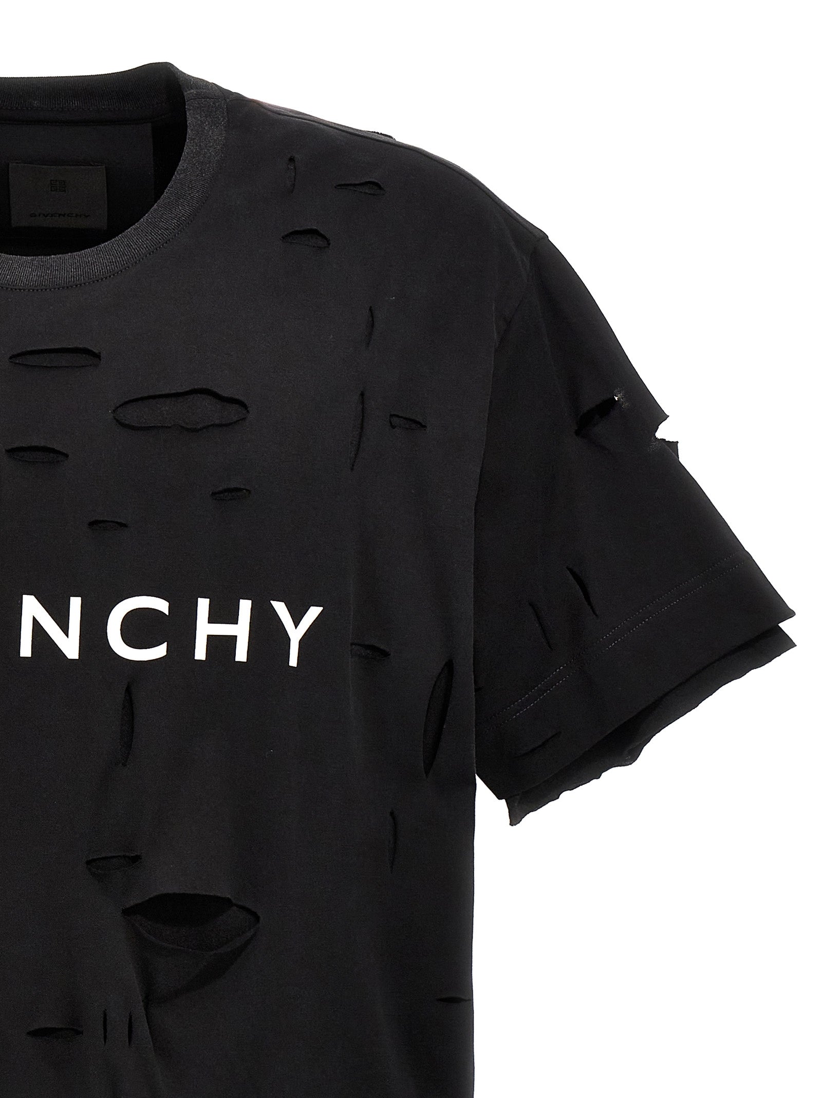 Destroyed effect cotton crew neck t-shirt with logo print.