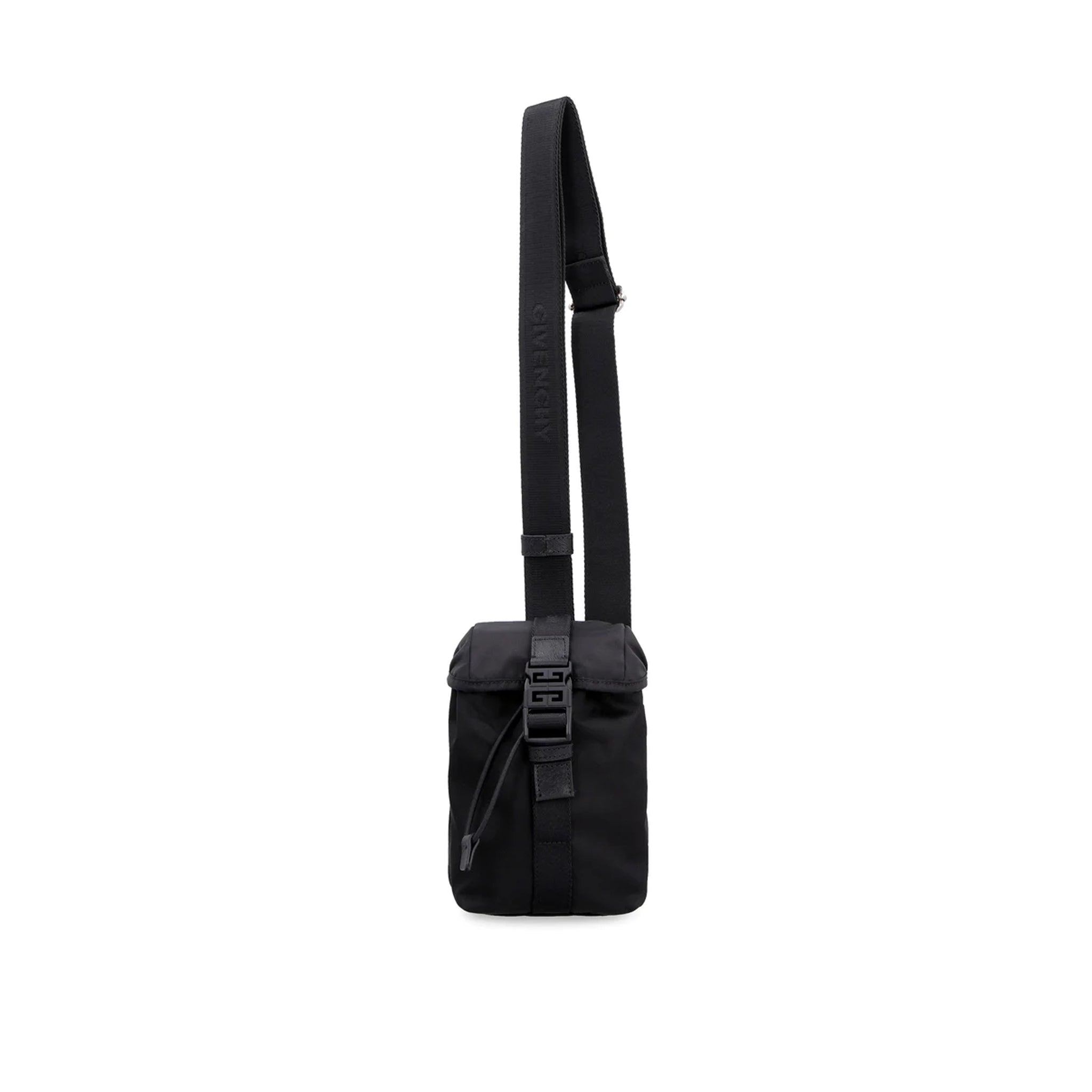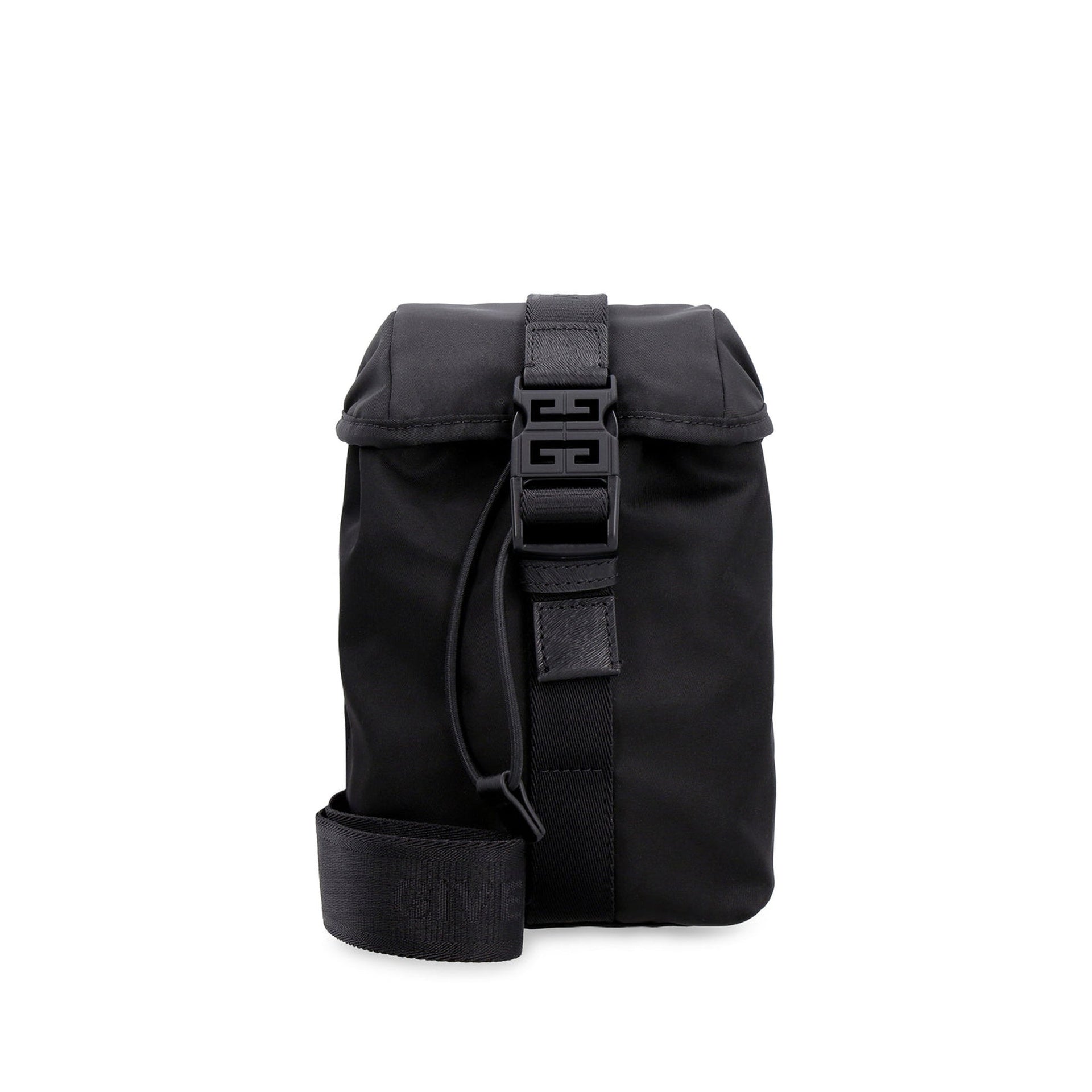 - Composition: 100% nylon - Flap top closure - Buckle closure - Adjustable shoulder strap - Side zipped pockets - Front logo detail - Length 12.5cm - Height 19 cm / 7,4 in - Width 6 cm / 2,3 in - Made in Italy -