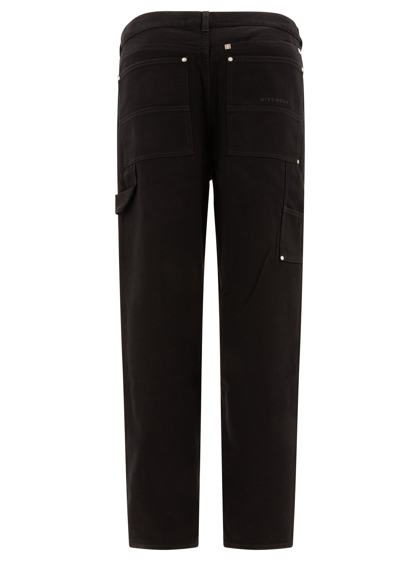 Givenchy's utility pants represent the perfect balance between style and functionality. Ideal for the modern man who seeks practicality without sacrificing elegance, they feature a solid color and a regular fit that makes them versatile for any occasion. Their carpenter-style construction adds a distinctive touch, making them ideal for both leisure and a sophisticated urban look.