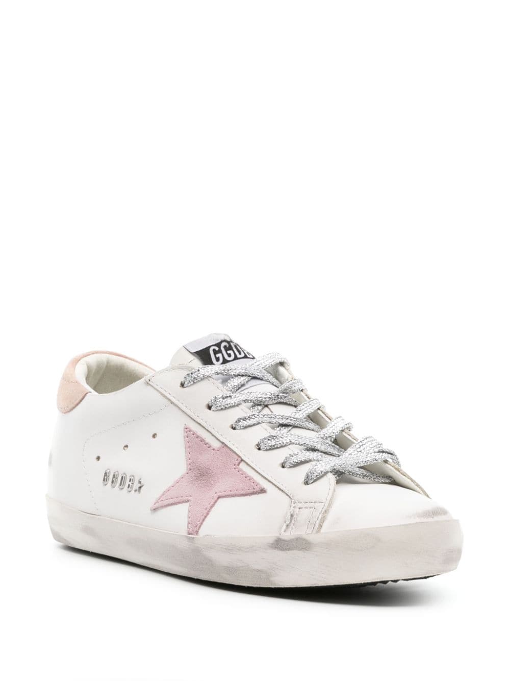 white powder pink calf leather panelled design suede panels logo plaque to the side faded effect signature star patch to the sides branded heel counter logo patch at the tongue contrasting laces round toe front lace-up fastening branded leather insole French terry lining flatform sole