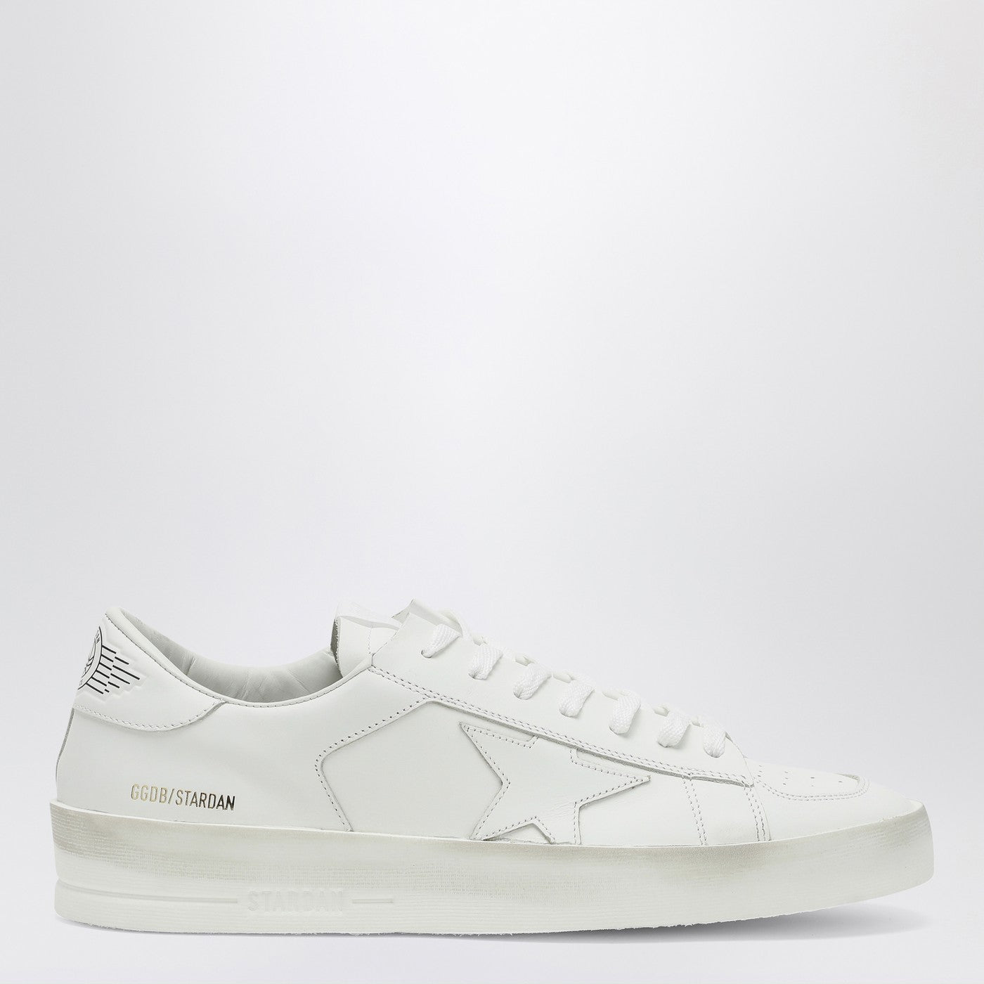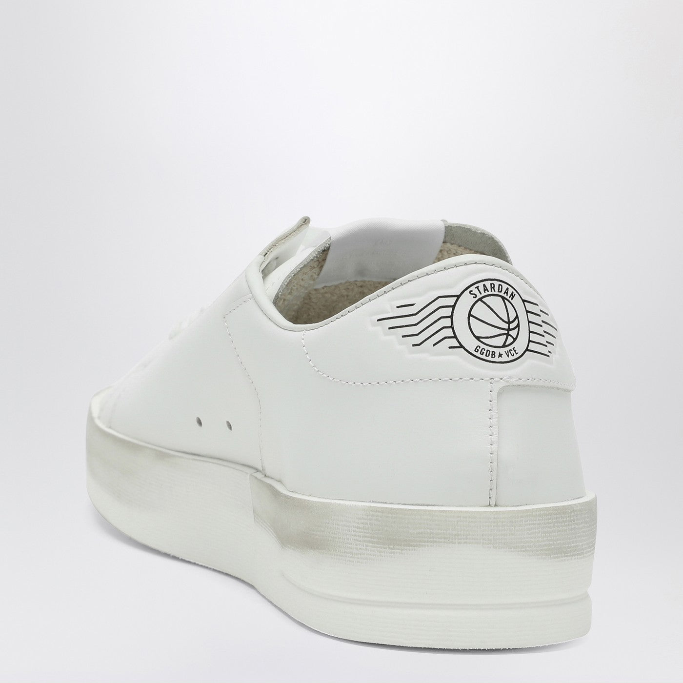 Low sneakers by Golden Goose Deluxe Brand in white smooth leather, featuring lace closure, round toe, leather and fabric lining, rubber sole, side star patch and heel with print.