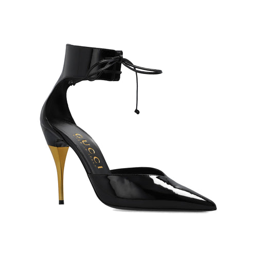- Composition: 100% Leather - Inner: 100% Leather - Insole: 100% Leather - Sole: 100% Leather - Pointed toe - Branded insole - Front lace-up closure - Heel height: 105 mm - Metallic effect heel - Made of patent leather. - Made in Italy -