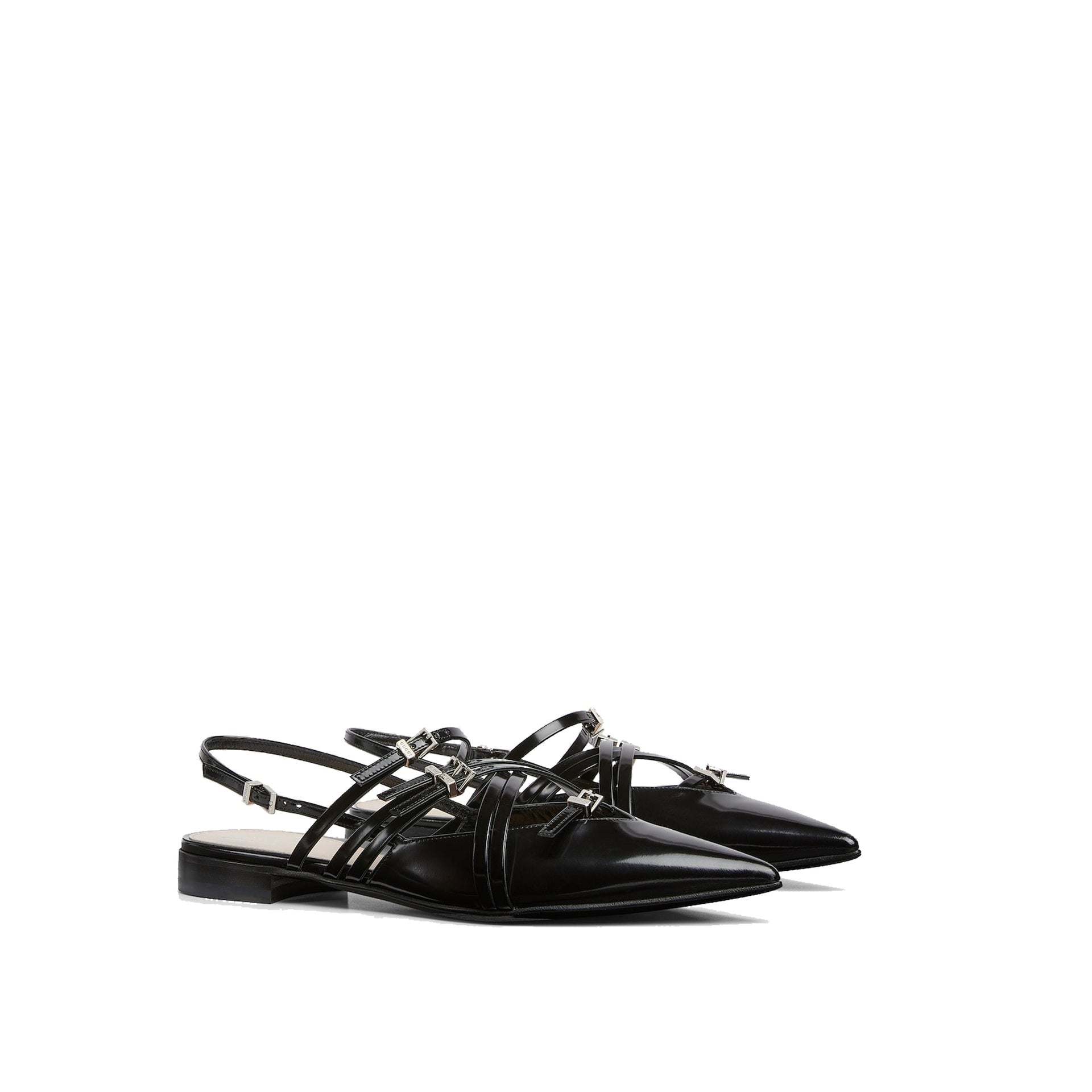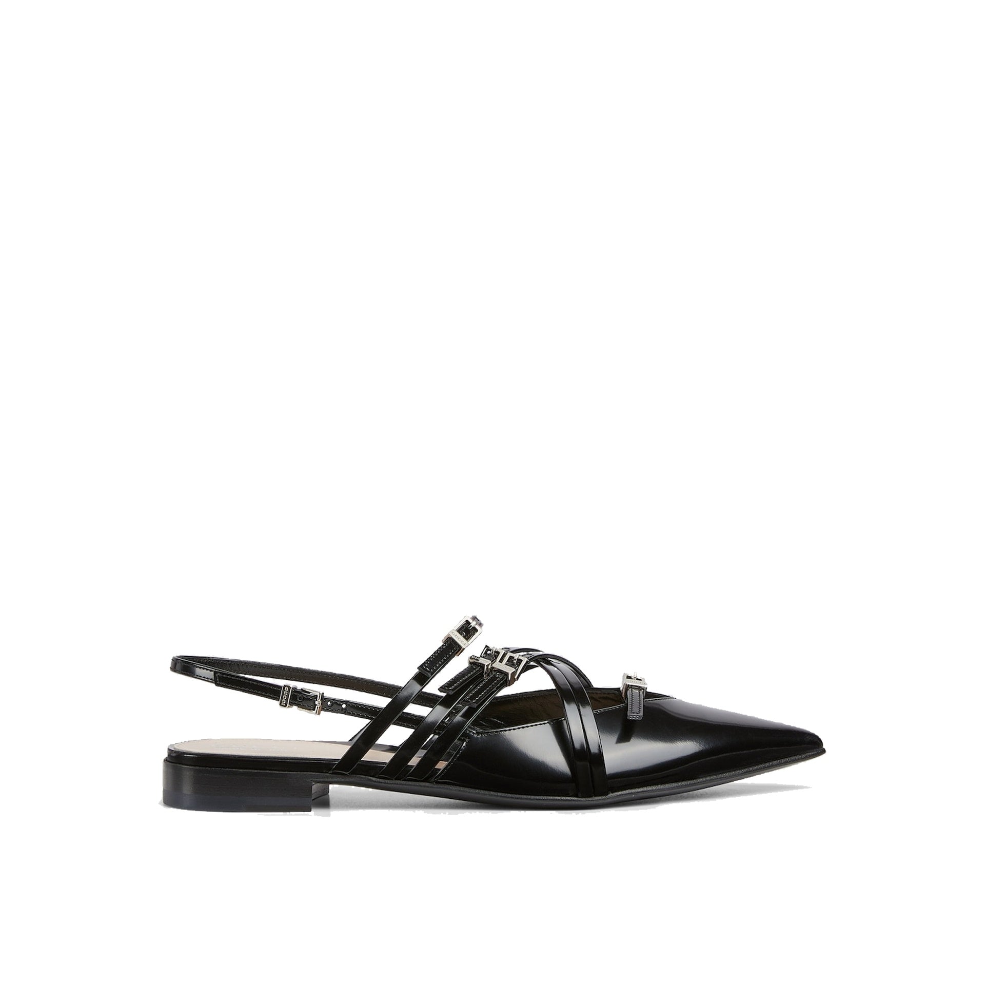 Composition100% calf leather inner: leather insole: leather sole: leather pointed toe patent effect open back crisscross straps and multi gucci buckles adjustable ankle strap with buckle closure made in italy