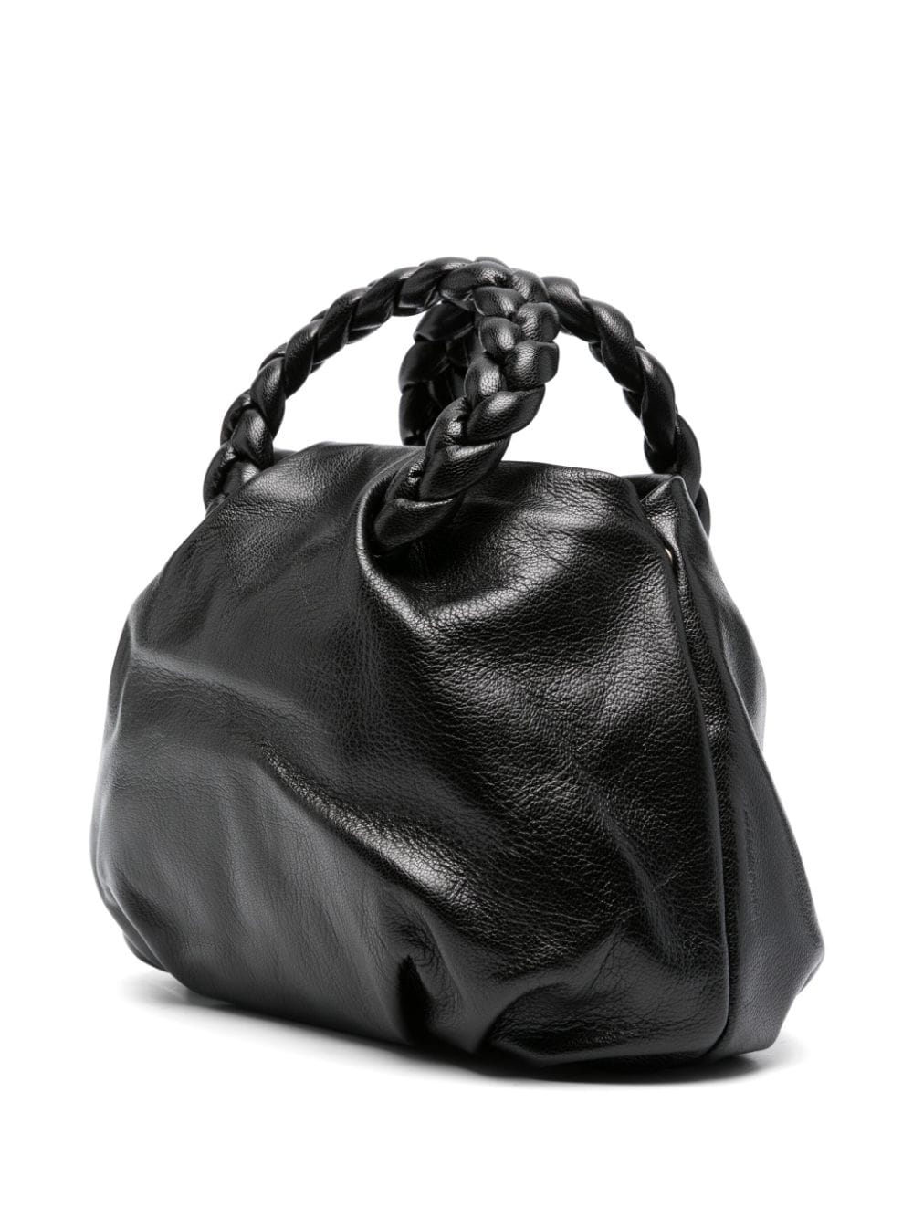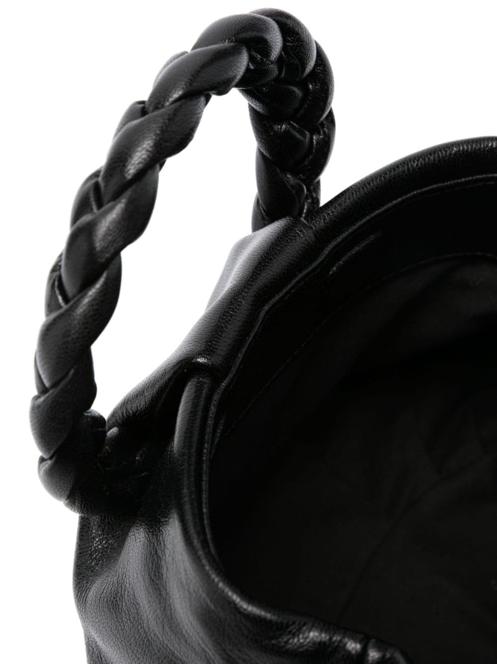 jet black calf leather grained texture draped detailing braided top handles magnetic fastening main compartment full lining