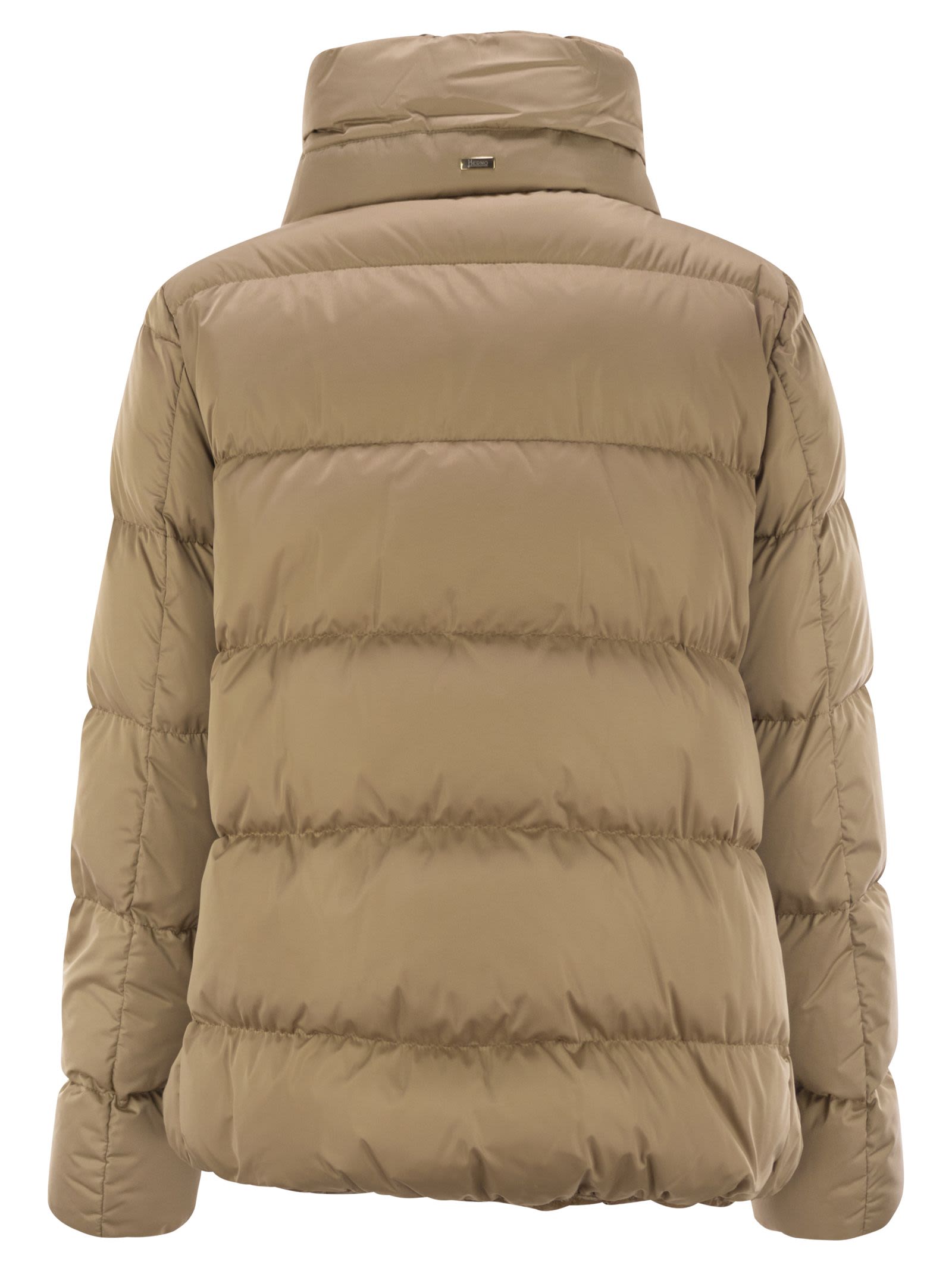 Down jacket made of Herno's iconic Ultralight Nylon: an innovative fabric with a particularly luxurious silk-like feel. Chic and versatile, the model interprets many combinations and is finished with fine down filling and striped quilting that enhances the silhouette. - Regular fit - Ring collar - Welt pockets - Grosgrain drawstring DESIGNER ID: PI001936D12170Z 2157