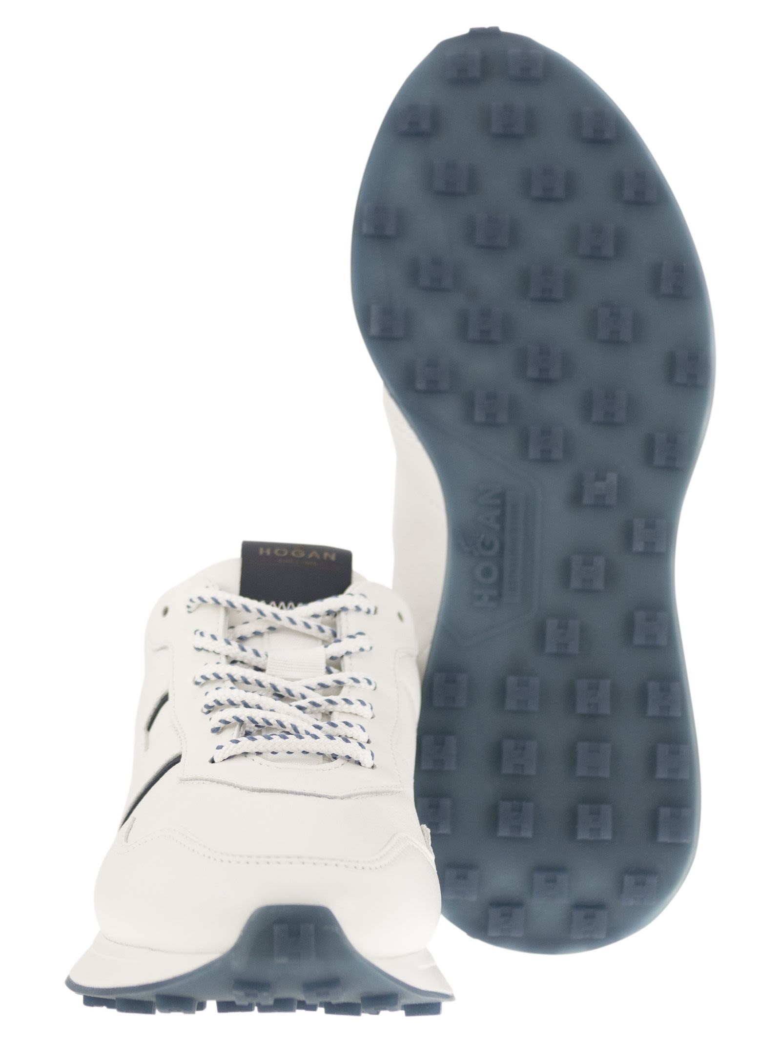 Gritty looks and retro suggestions coexist in the Hogan H601. Designed for optimal grip, the light sole has a tread pattern with the typical H-shaped cleats. These trainers feature a soft leather upper, with H at the side. The memory foam footbed ensures a cushioned fit. - Leather upper - Lateral H - Memory foam footbed - Rubber sole - Includes an additional laces DESIGNER ID: HXM6010EH41QZB11G1