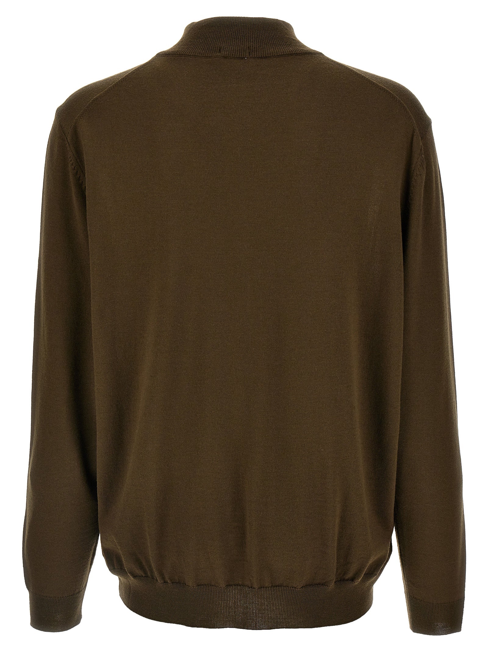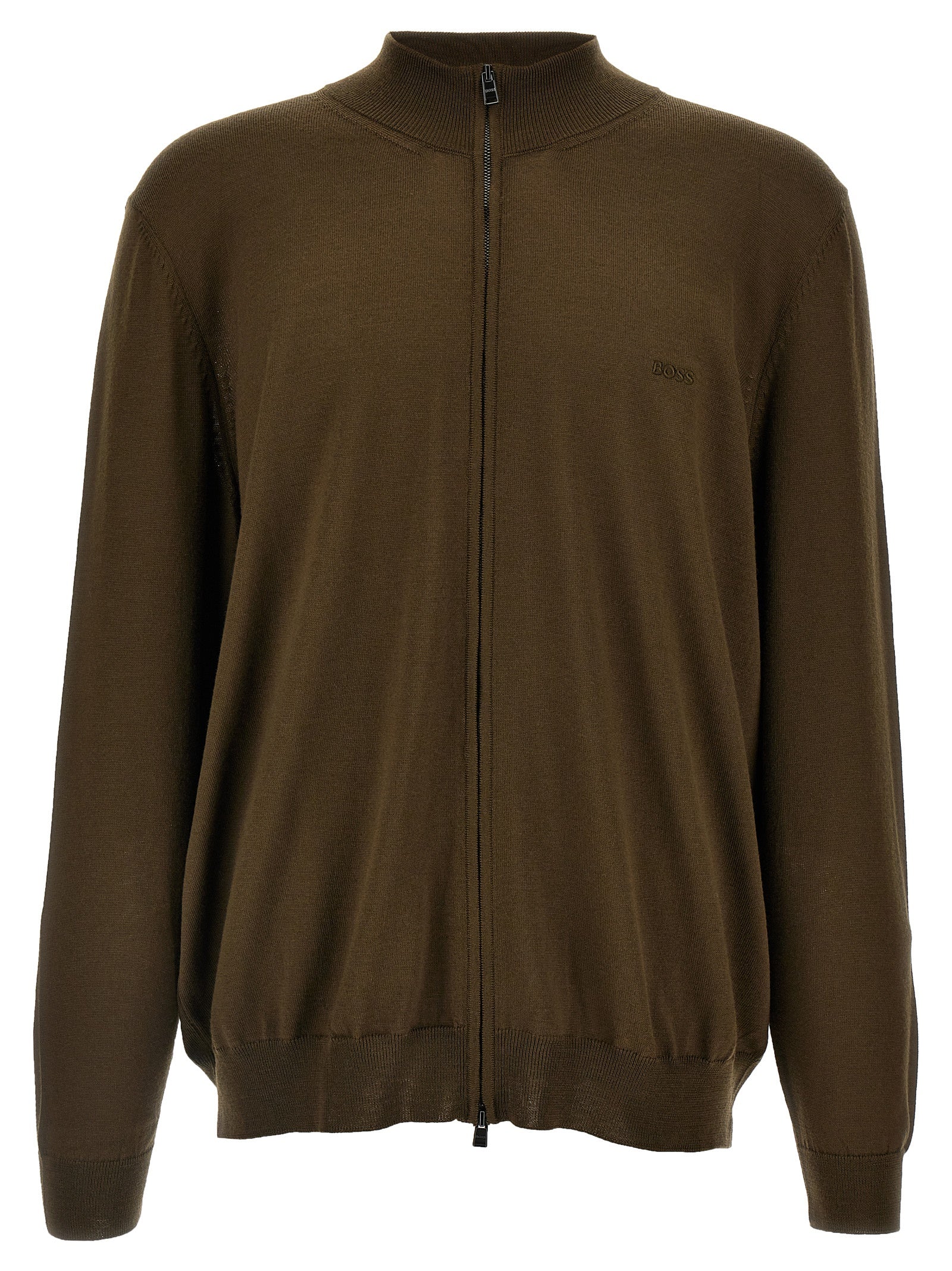 'Balonso-L' wool cardigan with front logo embroidery, zip closure, long cuffed sleeves.