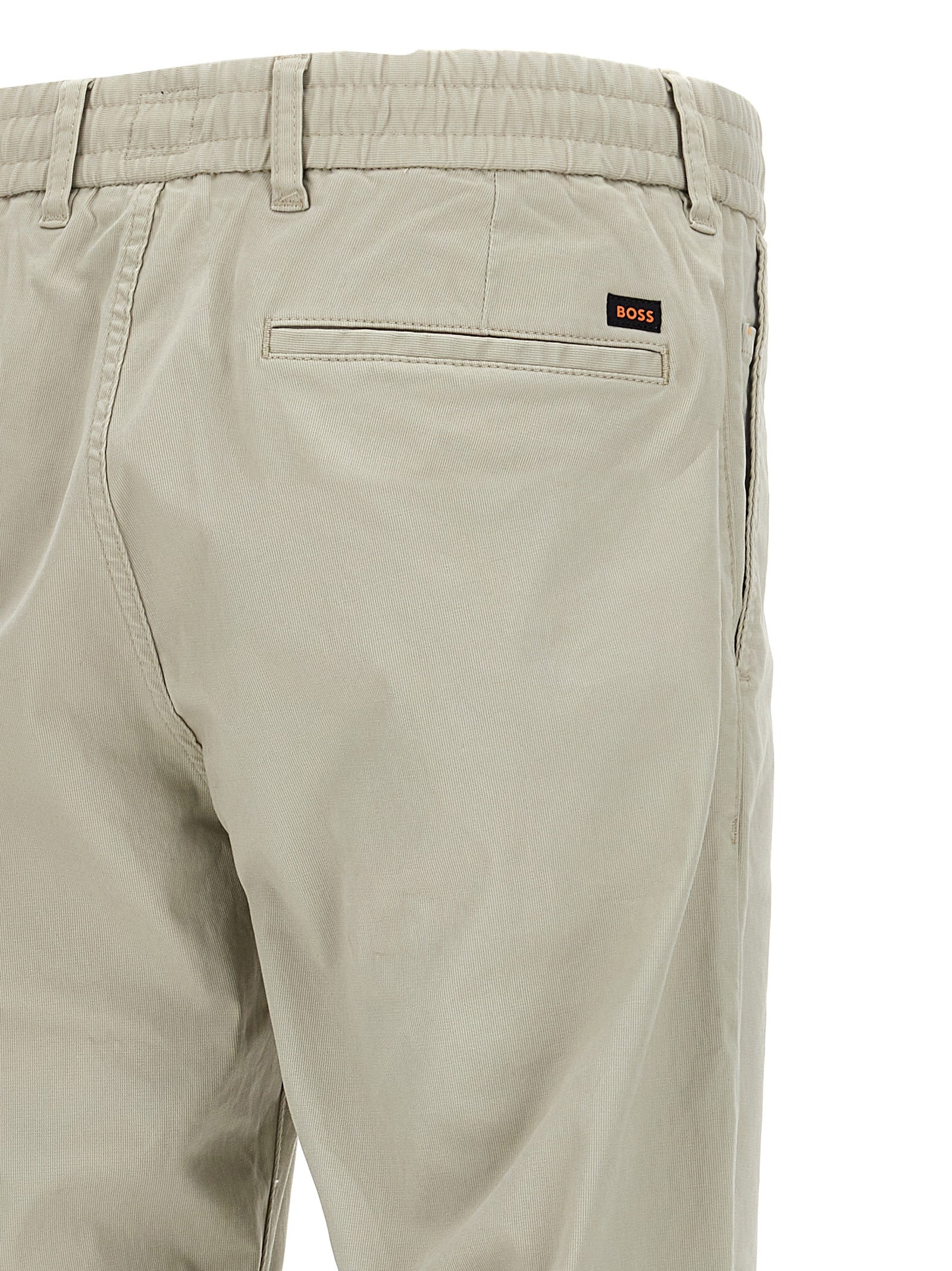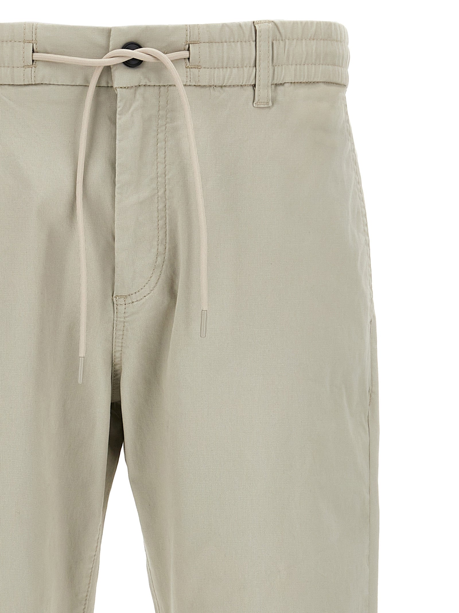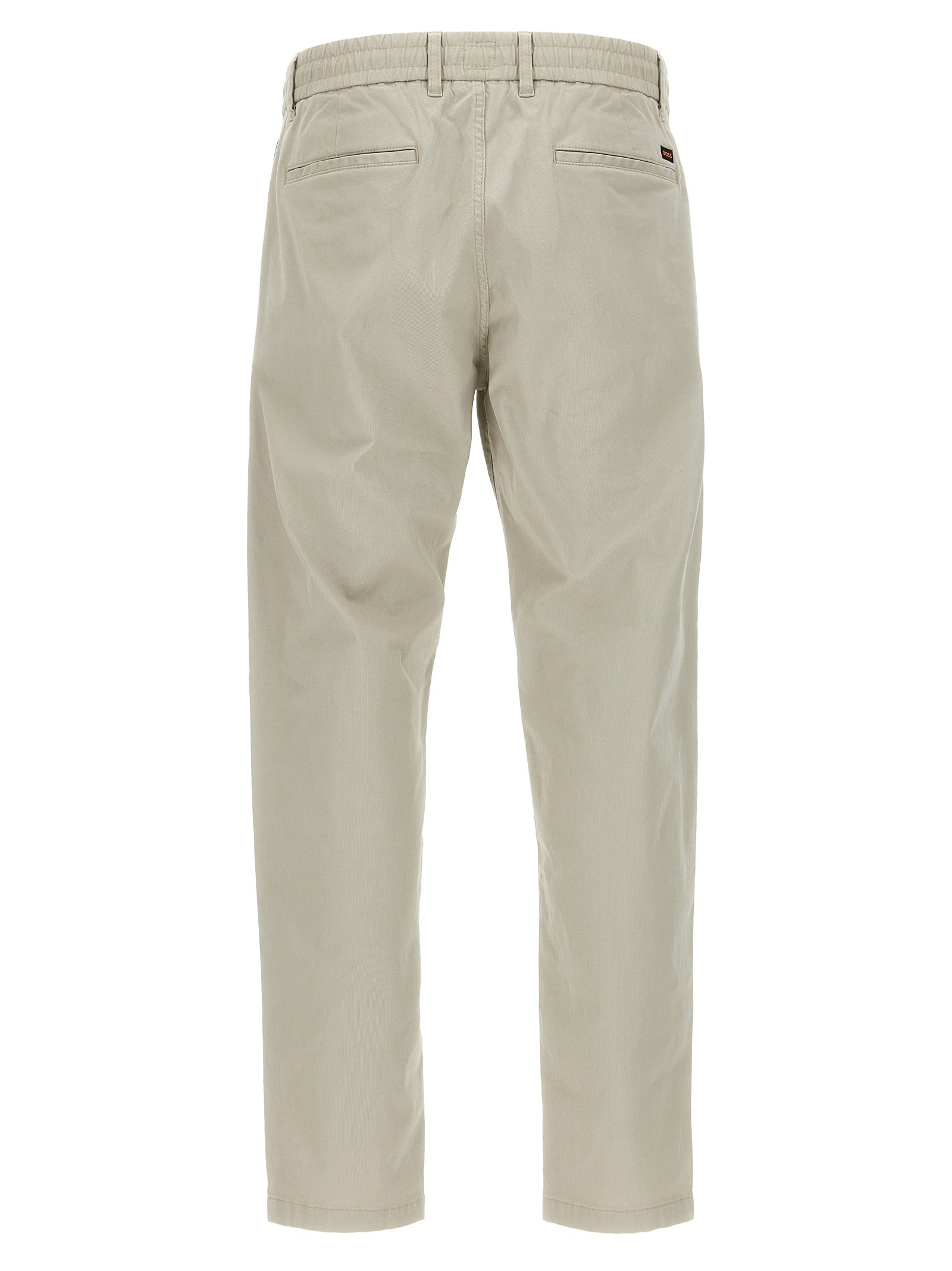 Cotton pants, elastic with adjustable drawstring at the waist, zip and button closure, pockets, straight leg.