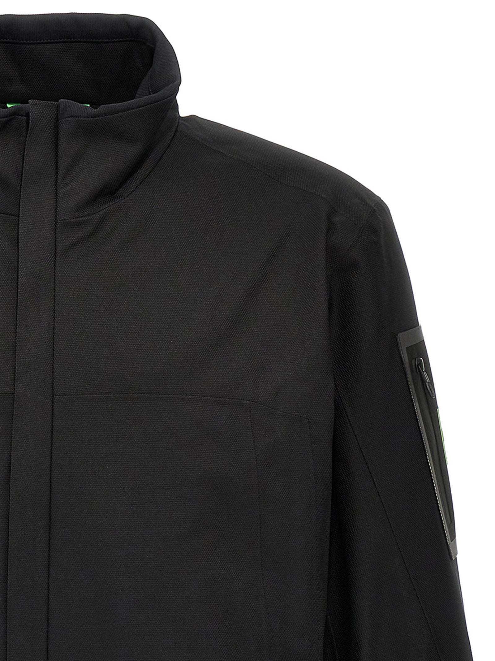 'J Jord' jacket in water-repellent technical fabric lined with fleece, high neck, zip closure, pockets, long sleeves with knitted cuffs.