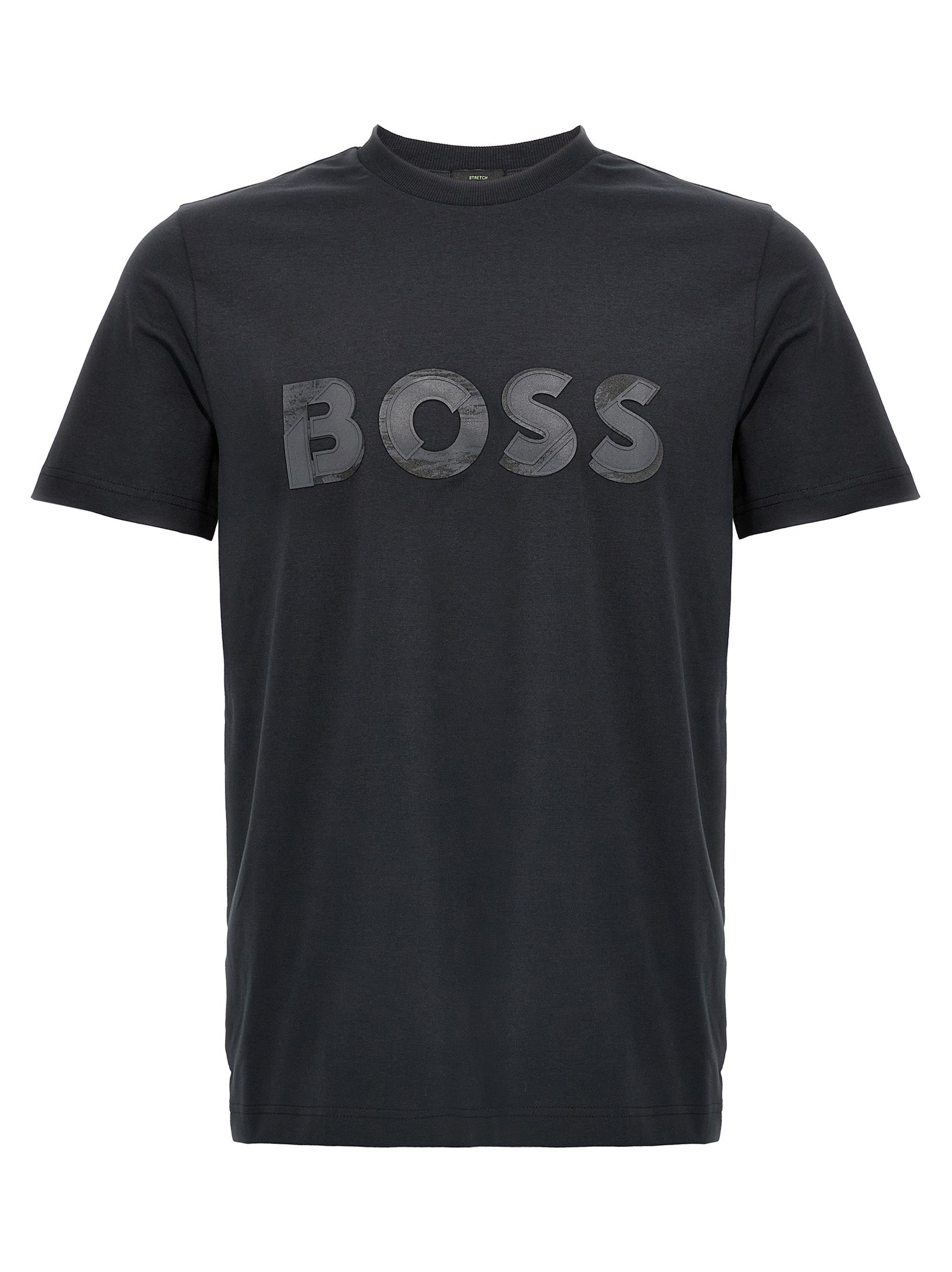 'Jagged' stretch cotton crew neck t-shirt with embossed front logo, short sleeves.