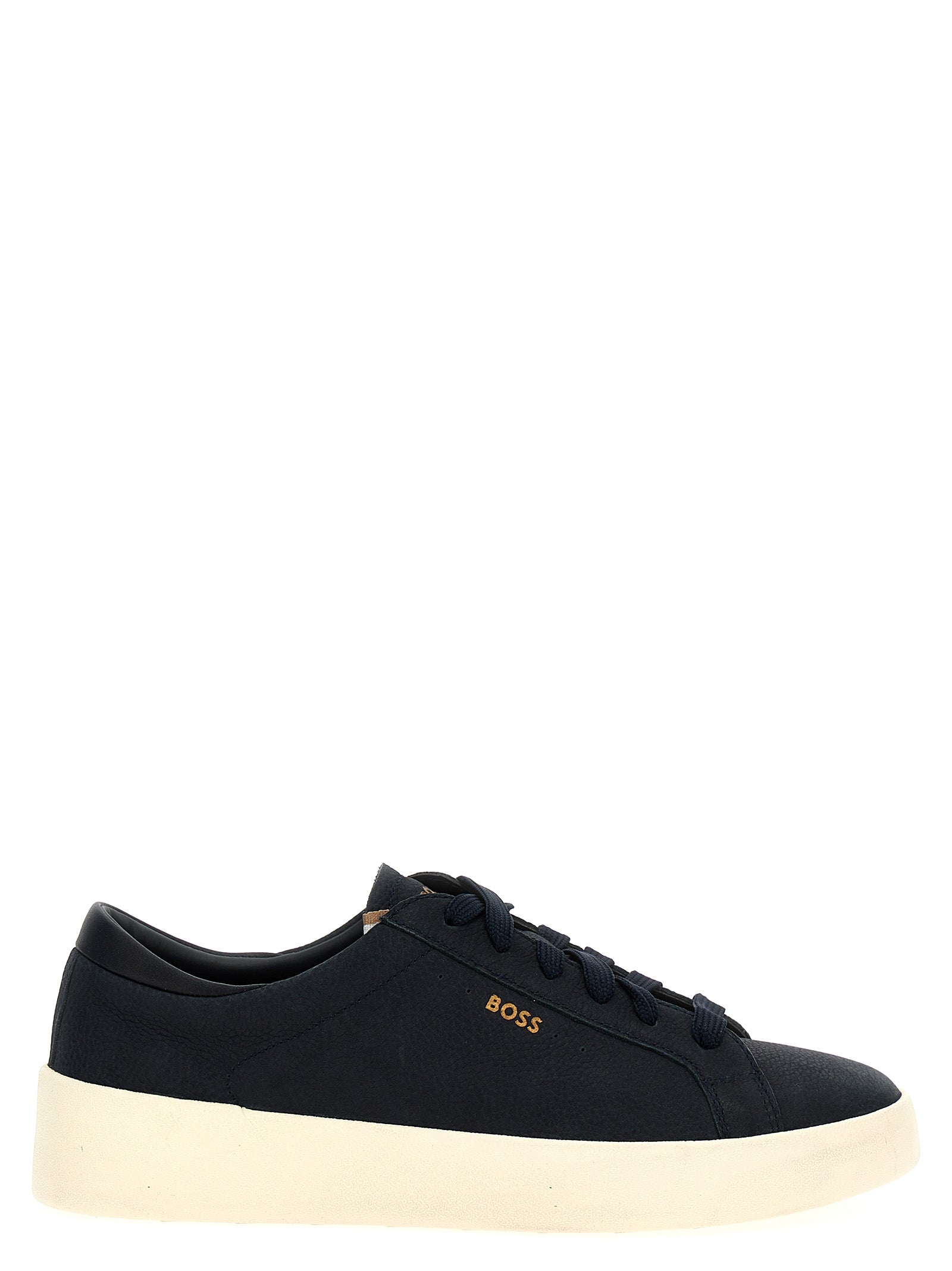 Leather sneakers, side logo print detail, application on the tongue, lace-up closure, rubber sole.