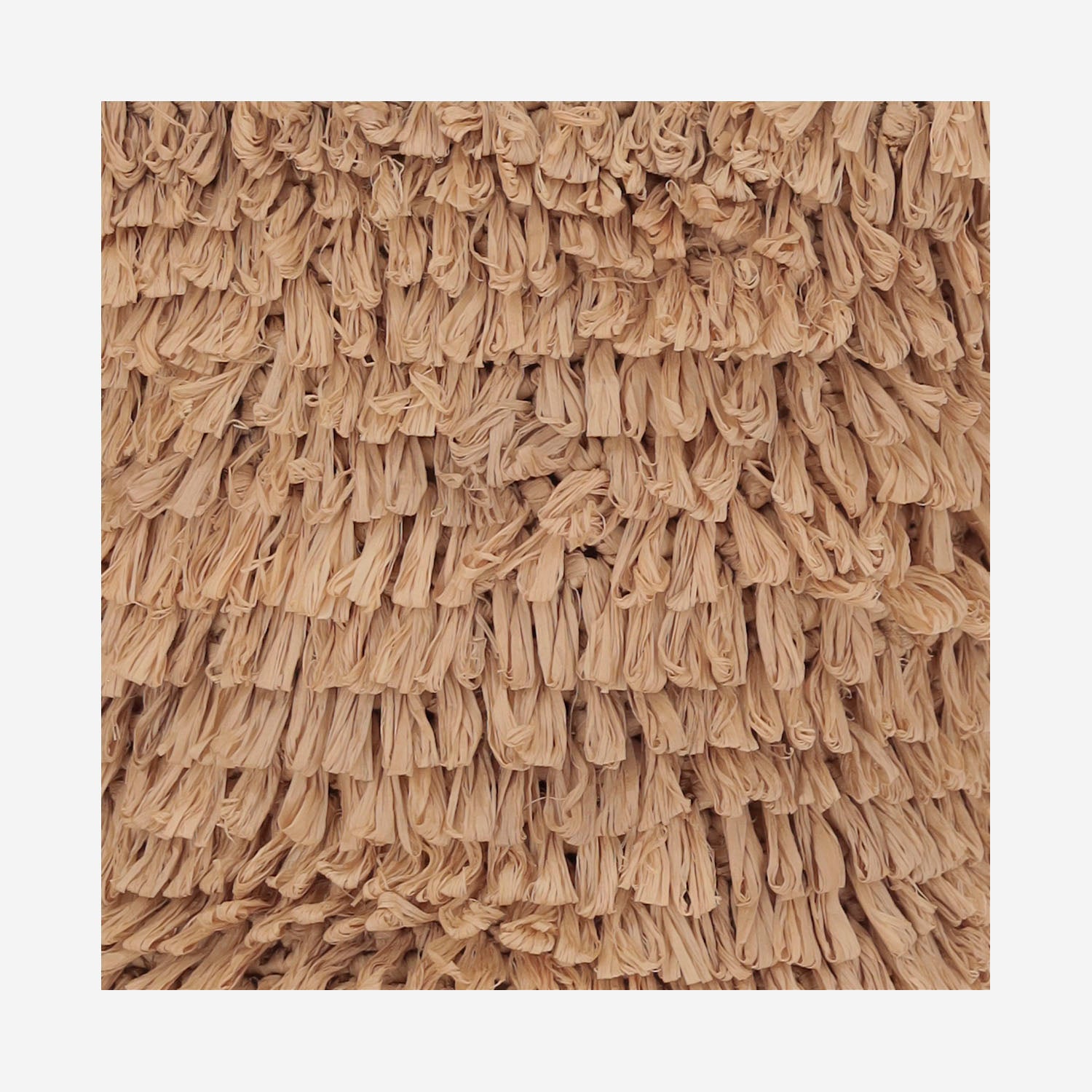 Shoulder bag made of raffia Two on-top handles Interior drawstring closure All-over fringed pattern One removable leather shoulder strap. Single compartment Made in Madagascar Composition: 100% raffia