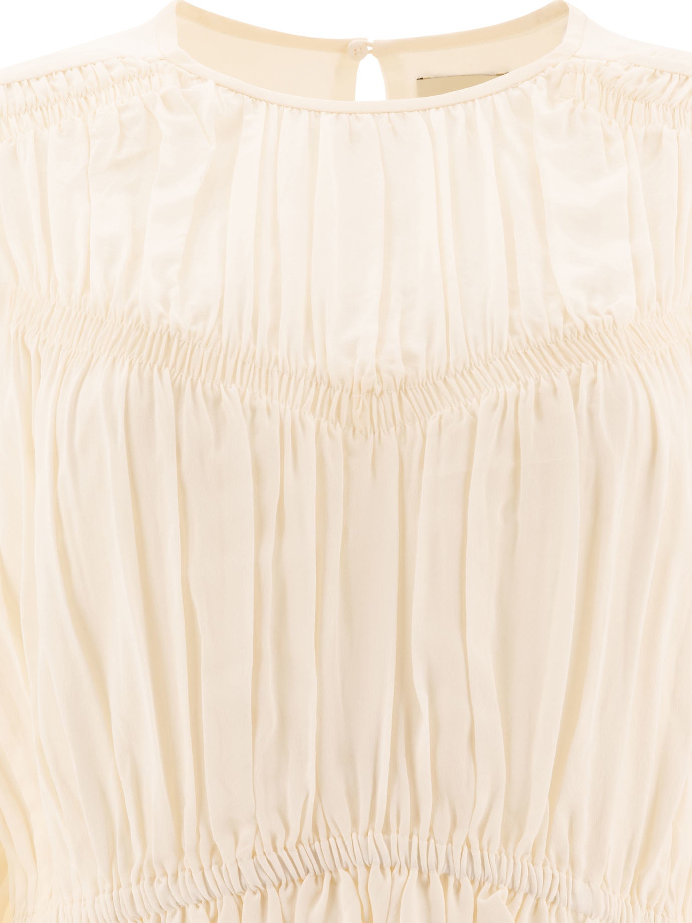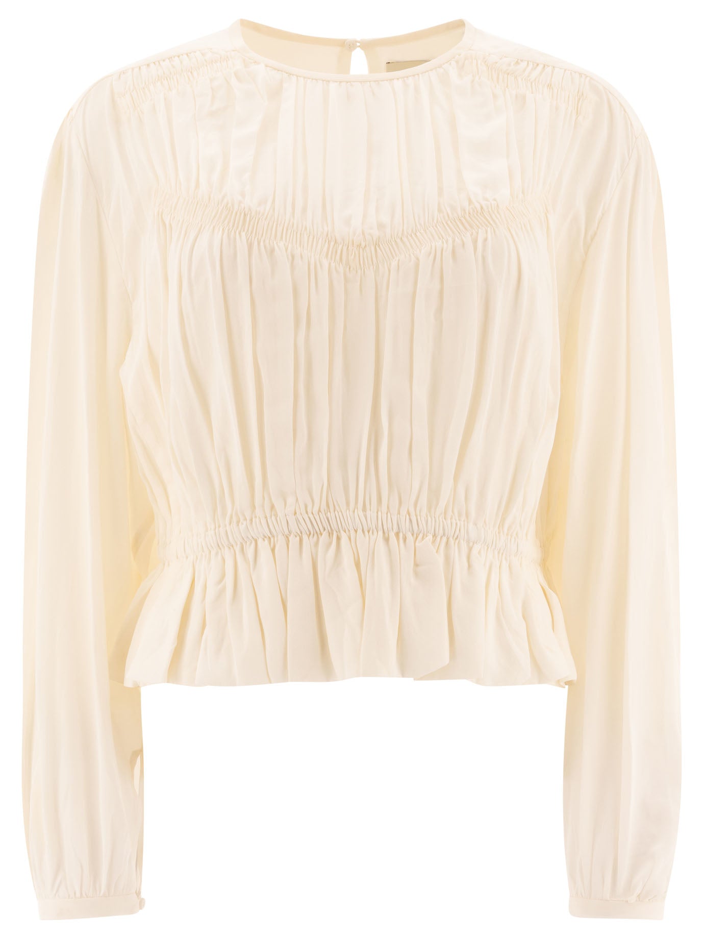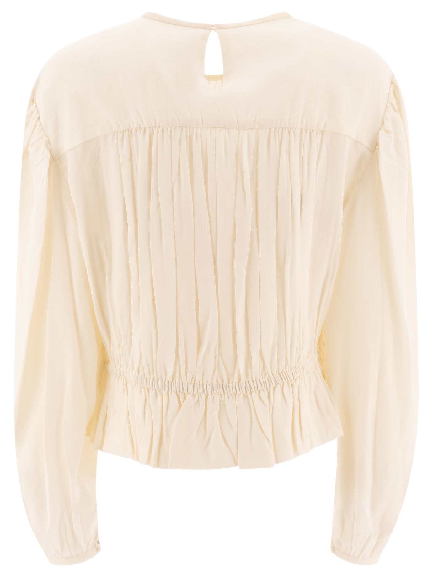 Discover the refined appeal of Isabel Marant's "Gelina" blouse. Crafted in an elegant crepe de chine, this gathered solid-color blouse features a comfortable yet cinched waist fit that enhances the feminine silhouette. Perfect for those looking for a versatile and chic garment, ideal for adding a touch of class to your everyday wardrobe.