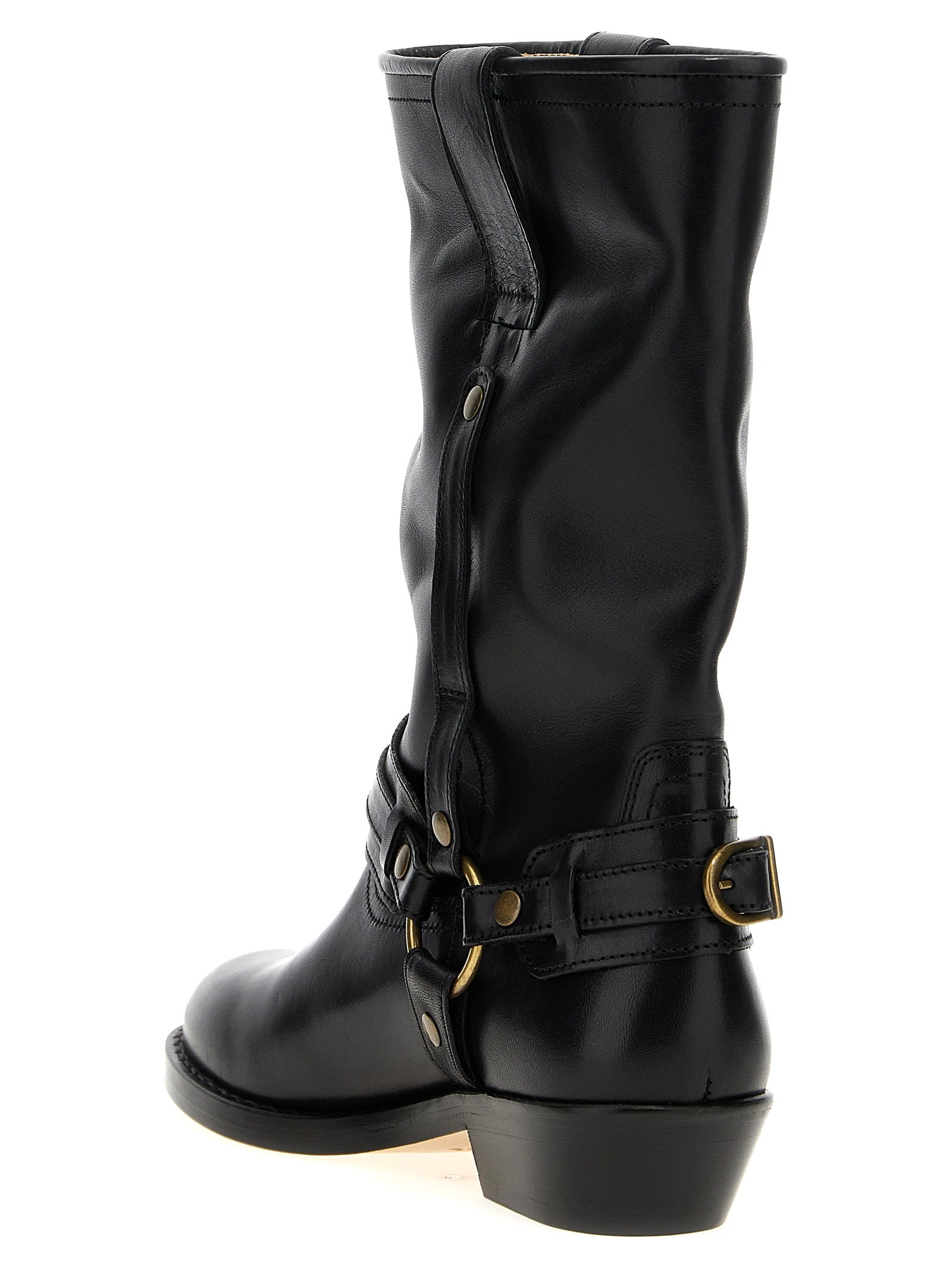'Heiko' leather ankle boots with straps and metal details, rounded toe, low heel and leather sole.