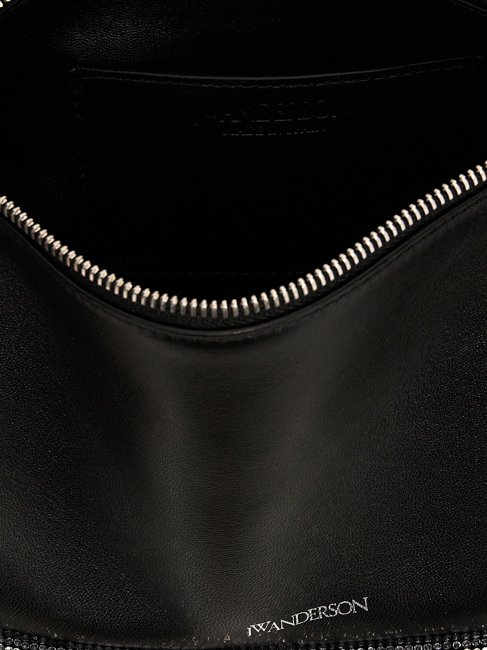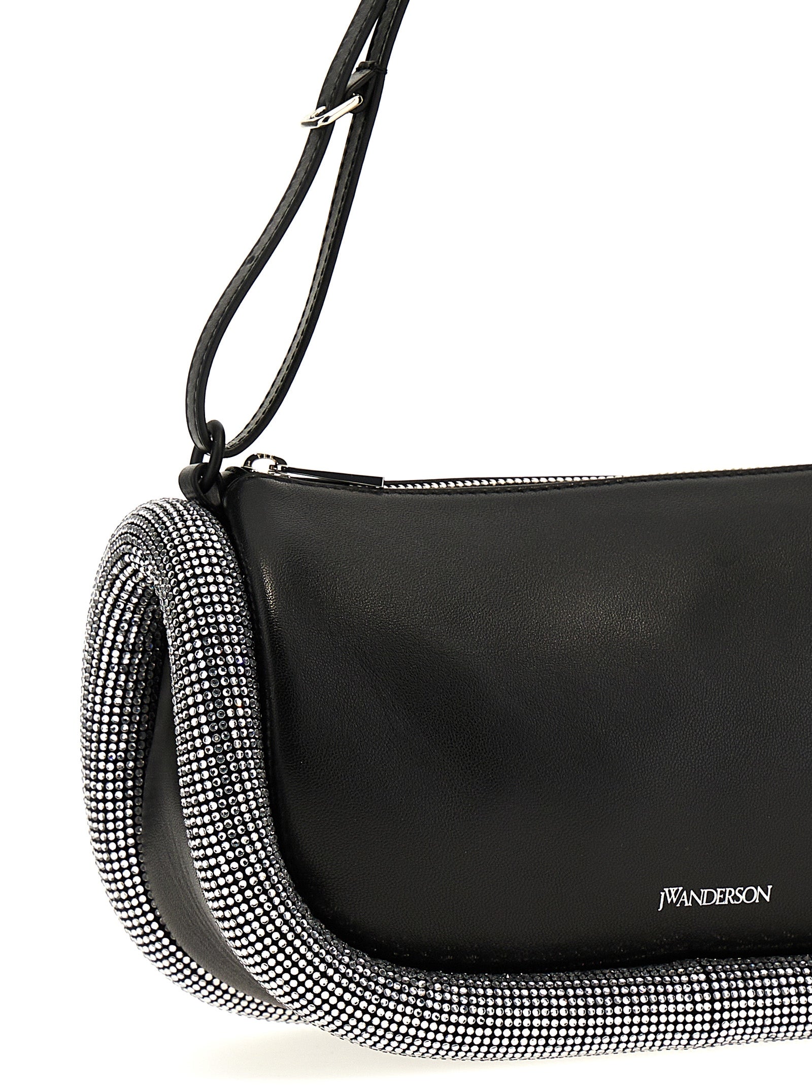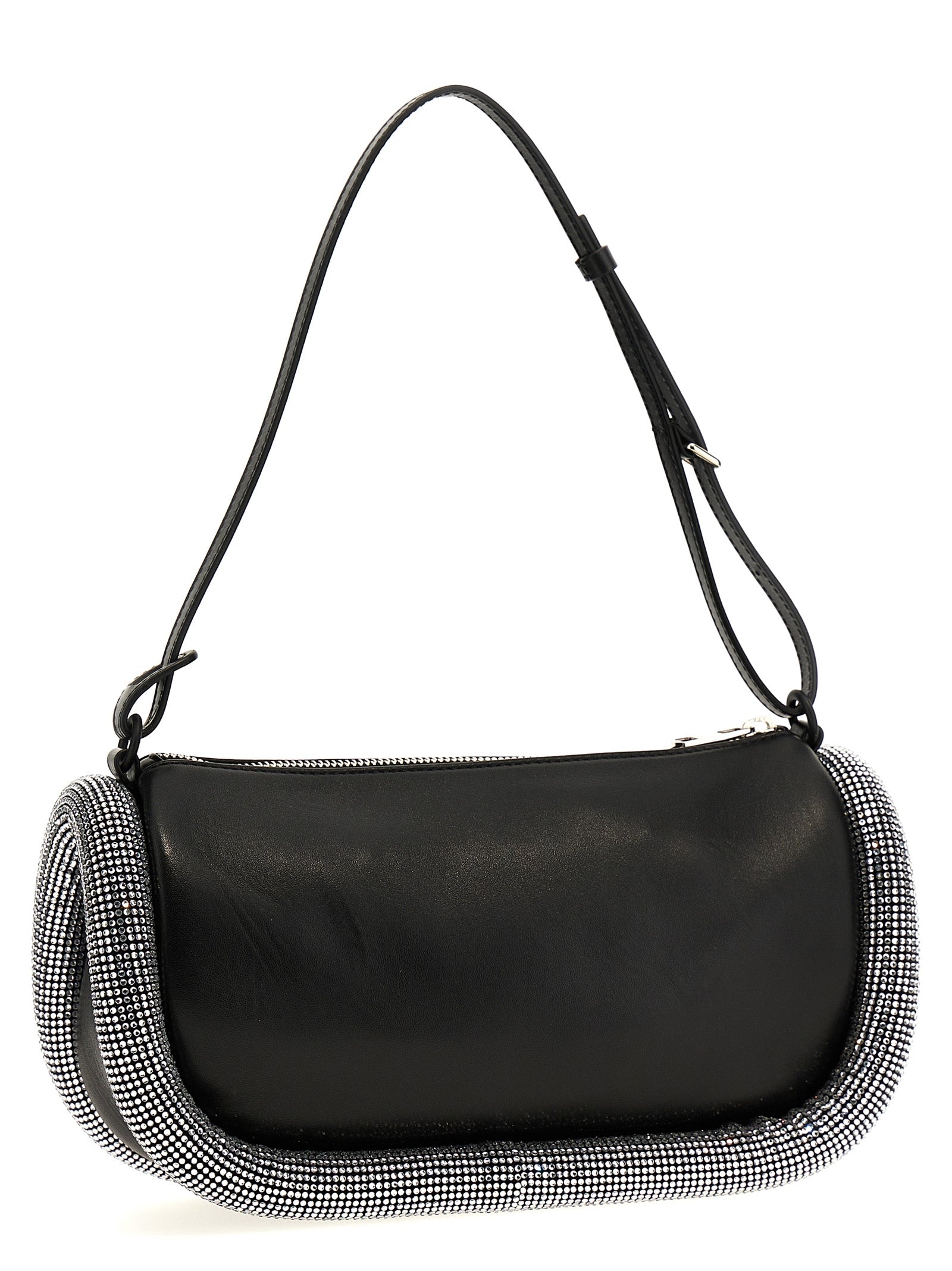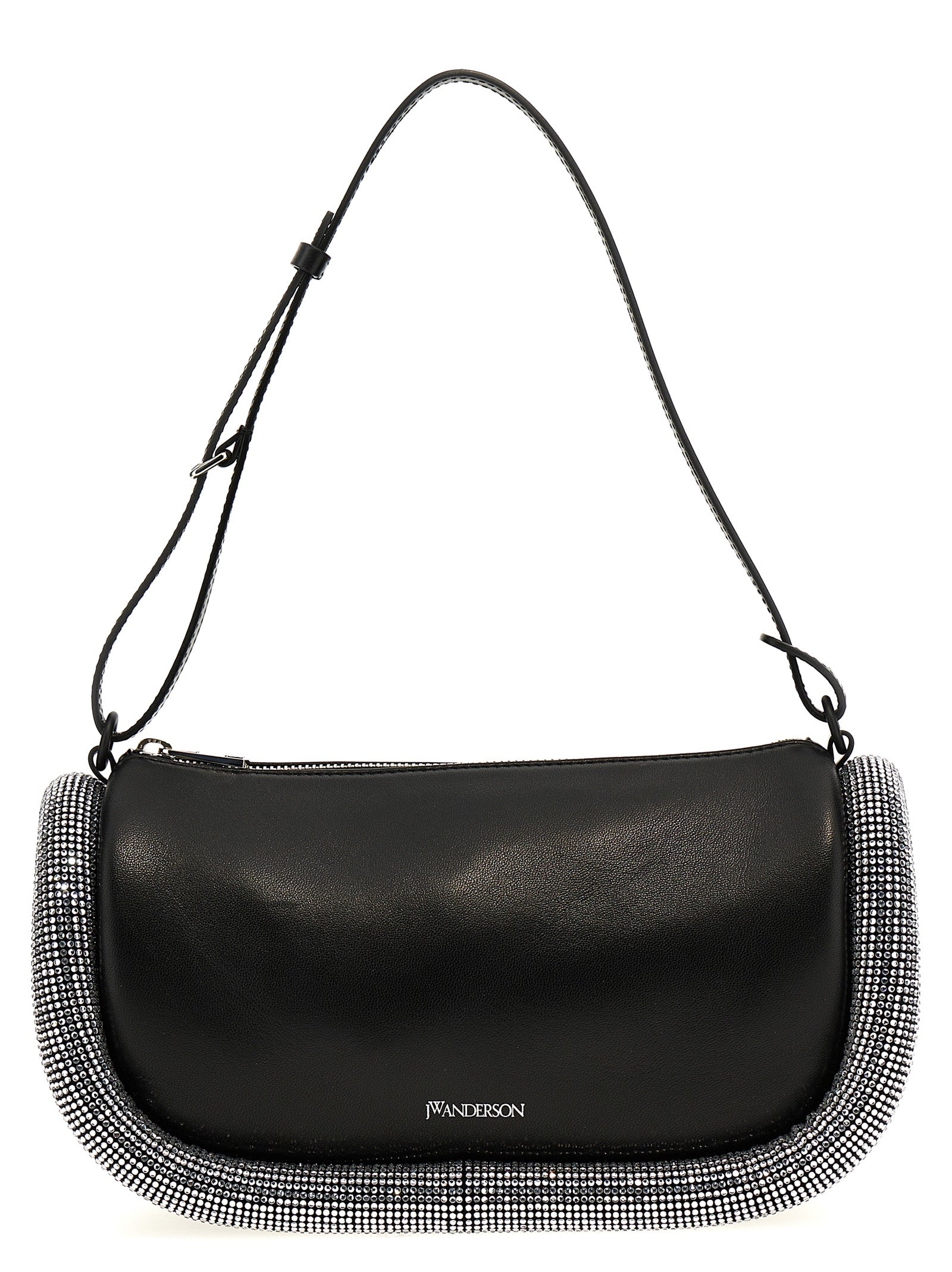 'Crystal Bumper 15' leather shoulder bag, adjustable leather handle, tubular padding with crystal application, embossed logo, zip closure, inner pocket, nappa lining.