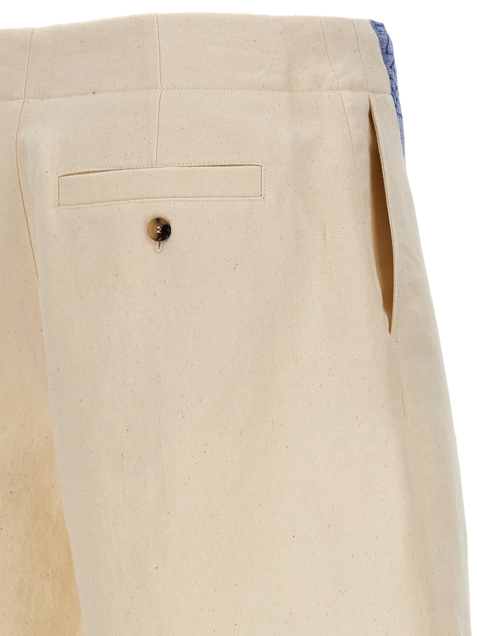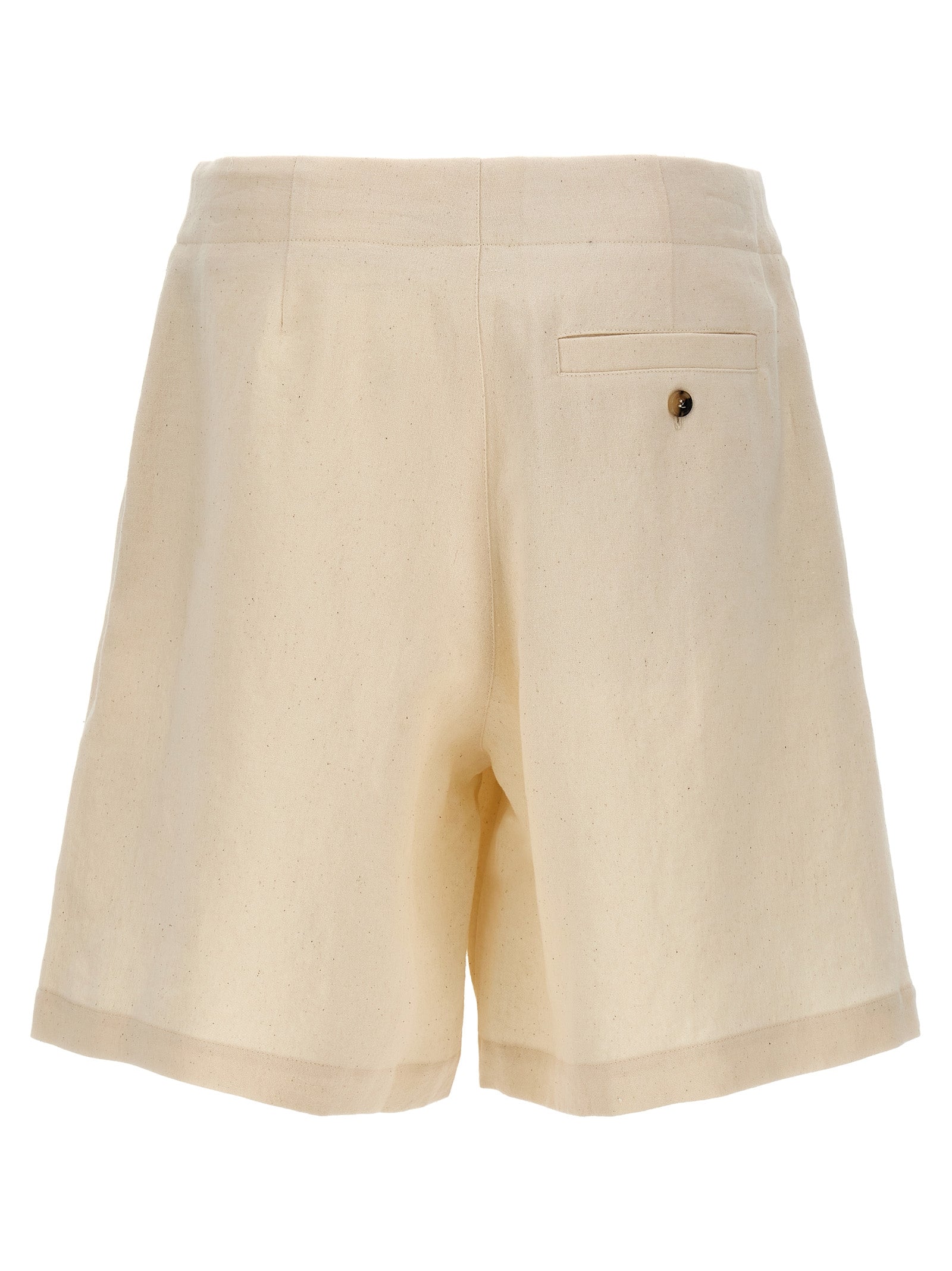 Bermuda shorts in linen and cotton with contrast logo band, drawstring at the waist, button closure and zip.