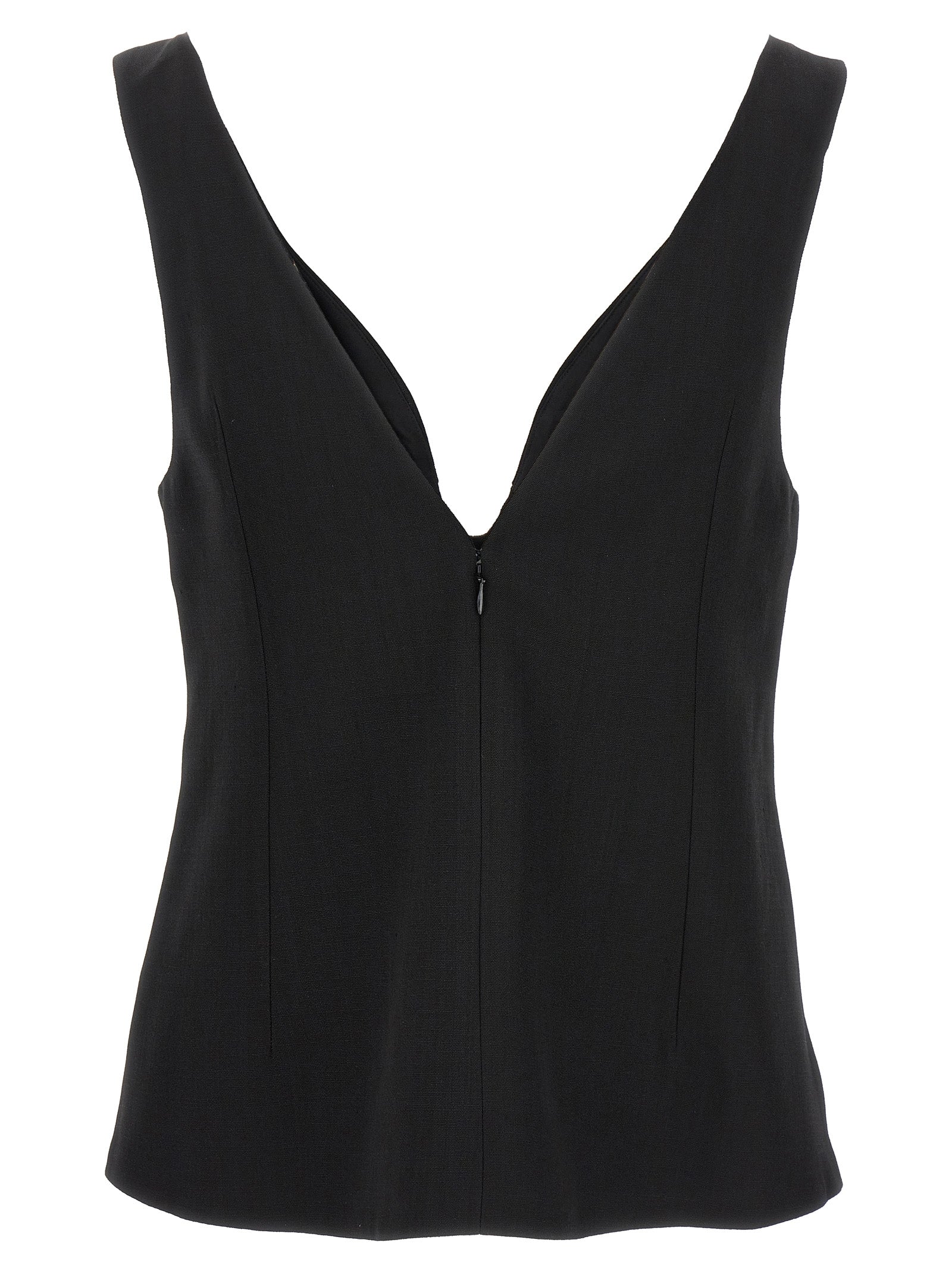 '70' viscose and silk blend top with V-neck, back zip closure.