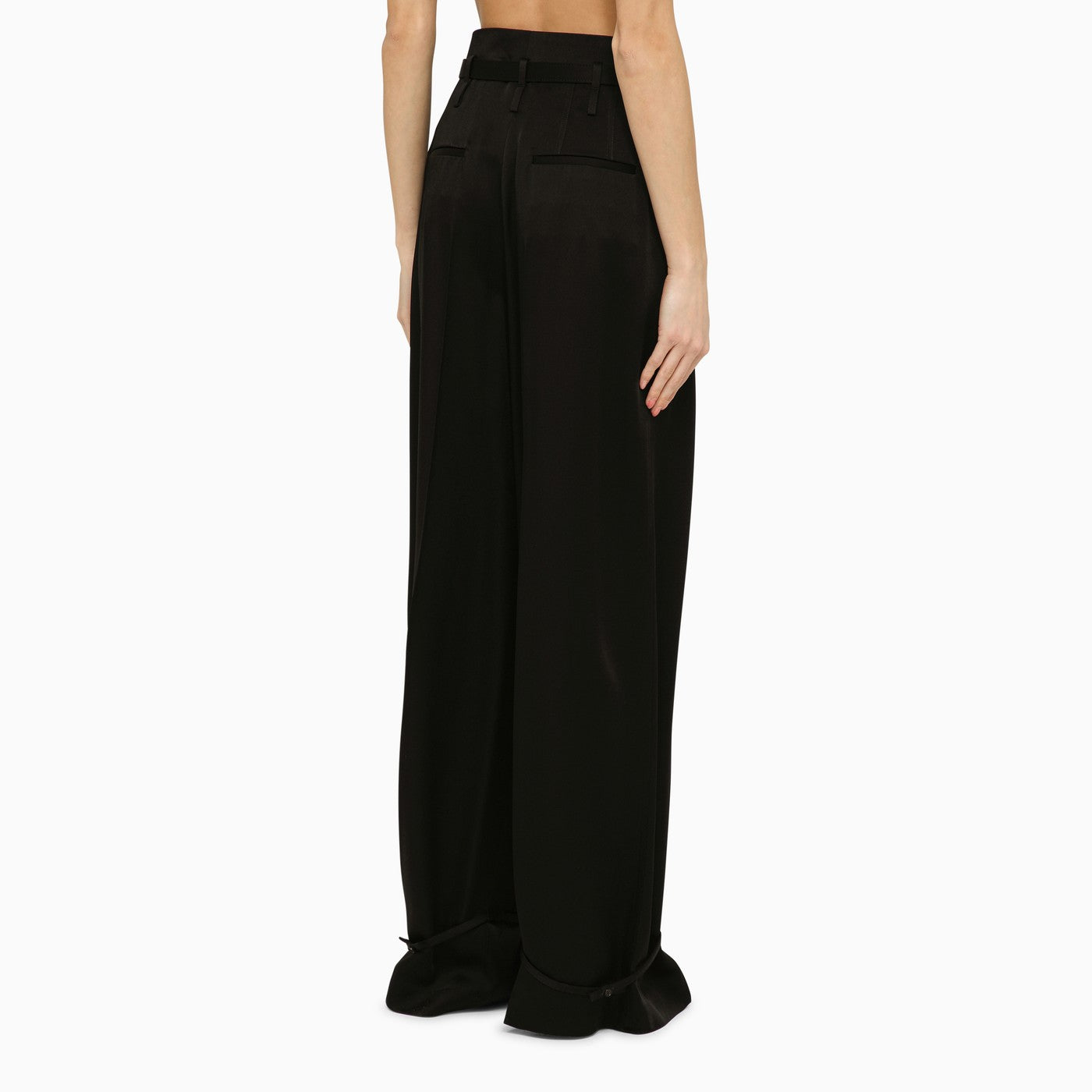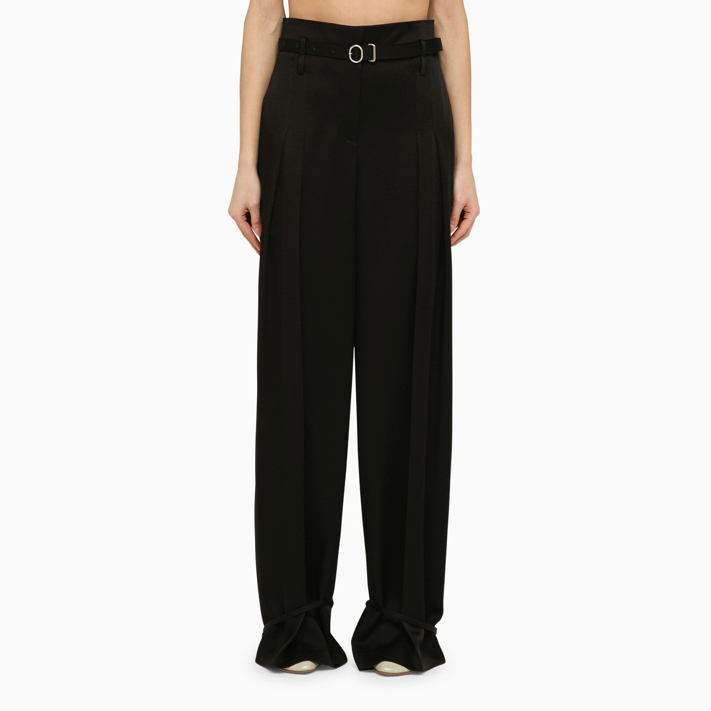 Black viscose blend wide leg trousers from Jil Sander featuring a front zip and hook fastening, a detachable waistband, two side welt pockets, two back welt pockets, a high waist, belt loops, an ankle tie, a loose fit and front darts.