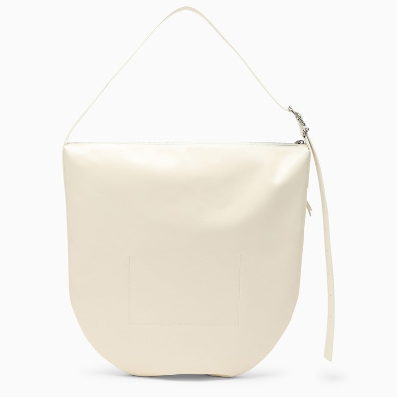 Ivory smooth leather shoulder bag from Jil Sander featuring an adjustable handle, a zip fastening and two card slots.